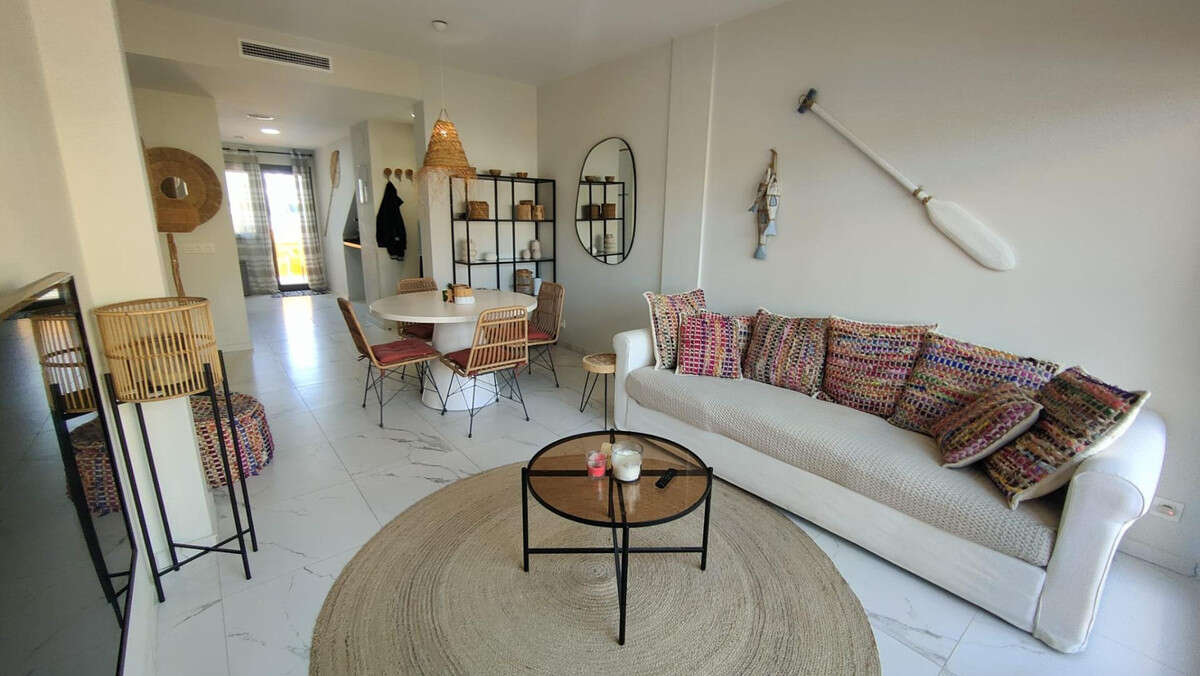 ✨ Upper floor bungalow with solarium and sea views in Alegría Village Resort – Finestrat ✨We present this beautiful upper floor bungalow, located in the exclusive Alegría Village Resort, one of the most complete and well-kept residential areas in Finestrat, with fantastic sea views and an environment designed to enjoy well-being and the Mediterranean lifestyle.The property has 2 bedrooms and 2 bathrooms, offering comfort and functionality. It has a large private solarium, ideal for relaxing, with a built-in barbecue, seating area, and open views. It comes fully equipped, including furniture and appliances, as well as solar panels for hot water, underfloor heating in the bathrooms, and electric blinds.The resort's communal areas are exceptional and designed for the whole family:???? Oriental garden with palm trees and fruit trees???? 25 x 12 m infinity pool???? 8 x 8 m Jacuzzi???? Pool bar???? Finnish sauna????️ Gym???? Children's playground and poolAll this in a privileged location, close to all amenities, with quick access to the motorway to Alicante, close to the Puig Campana golf course and just a few minutes from the beaches.✨ An ideal property for living, enjoying holidays or investing in one of the best areas of the Costa Blanca.