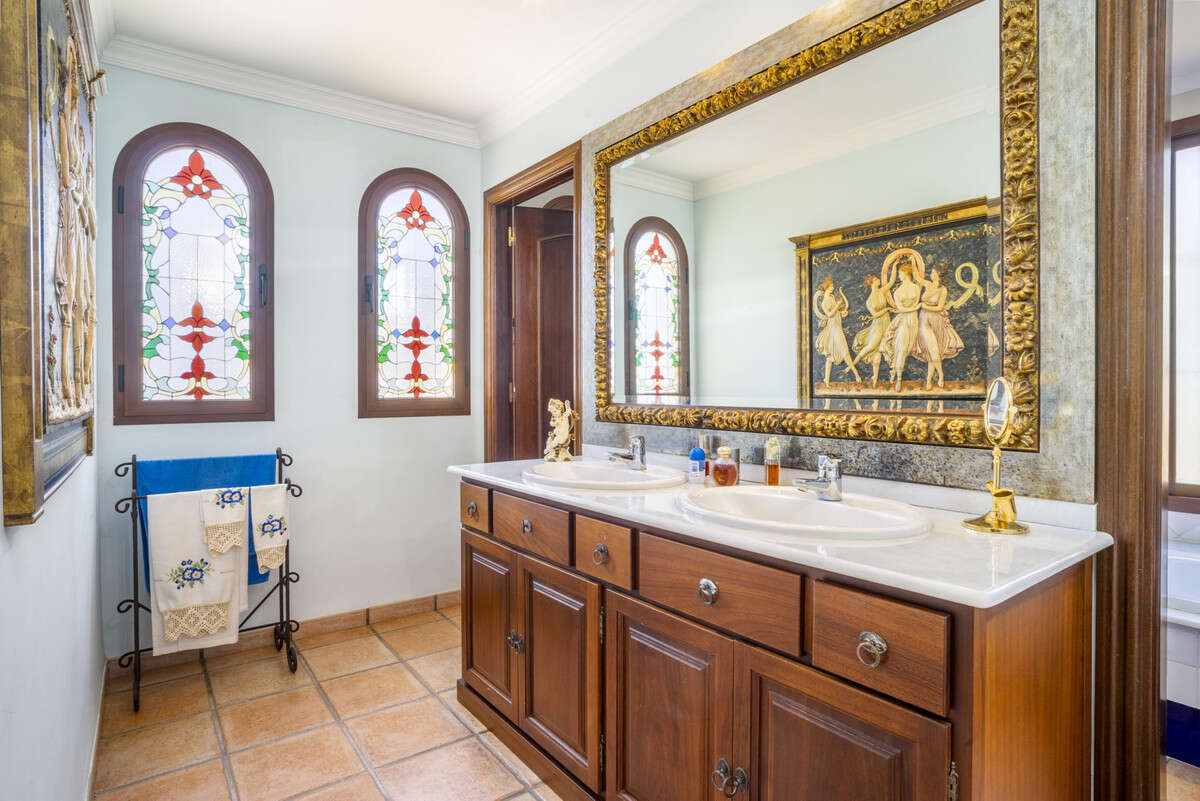 The kitchen is also large it is fully furnished and equipped with a cozy breakfast area. Double bedroom with bathroom ensuite that is used as a tv room. Upper floor: 4 double bedrooms and 3 bathrooms ( 2 ensuite). Large terrace with access through the bedrooms. Underground floor. There is a large basement of 109 m2 that is ideal to be used as a friend's party area or games room. It has large living area with fireplace, bar, and wine cellar. One Bedroom with ensuite bathroom, guest WC and extra music room. Garage for 2 cars. Air conditioning. Private well for watering the garden. The property has a nice mature garden with private pool.