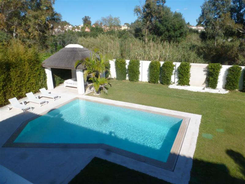 This stunning south facing villa is very close to the Guadalmina Golf Course, 350 meters distance to the beach, walking distance to all amenities and only 5 minutes drive to Puerto Banus, Marbella.