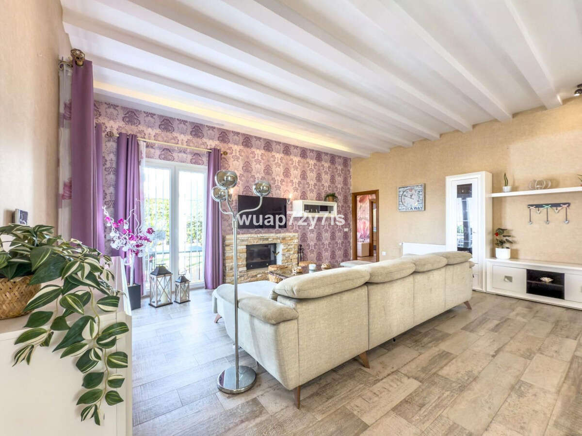 As you enter the villa, you are welcomed by a spacious entrance hall that leads into a large, open-plan living and dining area filled with natural light. The layout is designed to create a seamless flow between indoor and outdoor living, with large windows offering stunning views and direct access to the garden and pool area. To the left, behind elegant sliding doors, you'll find a modern and fully equipped kitchen that combines functionality and style, ideal for both everyday life and entertaining guests.