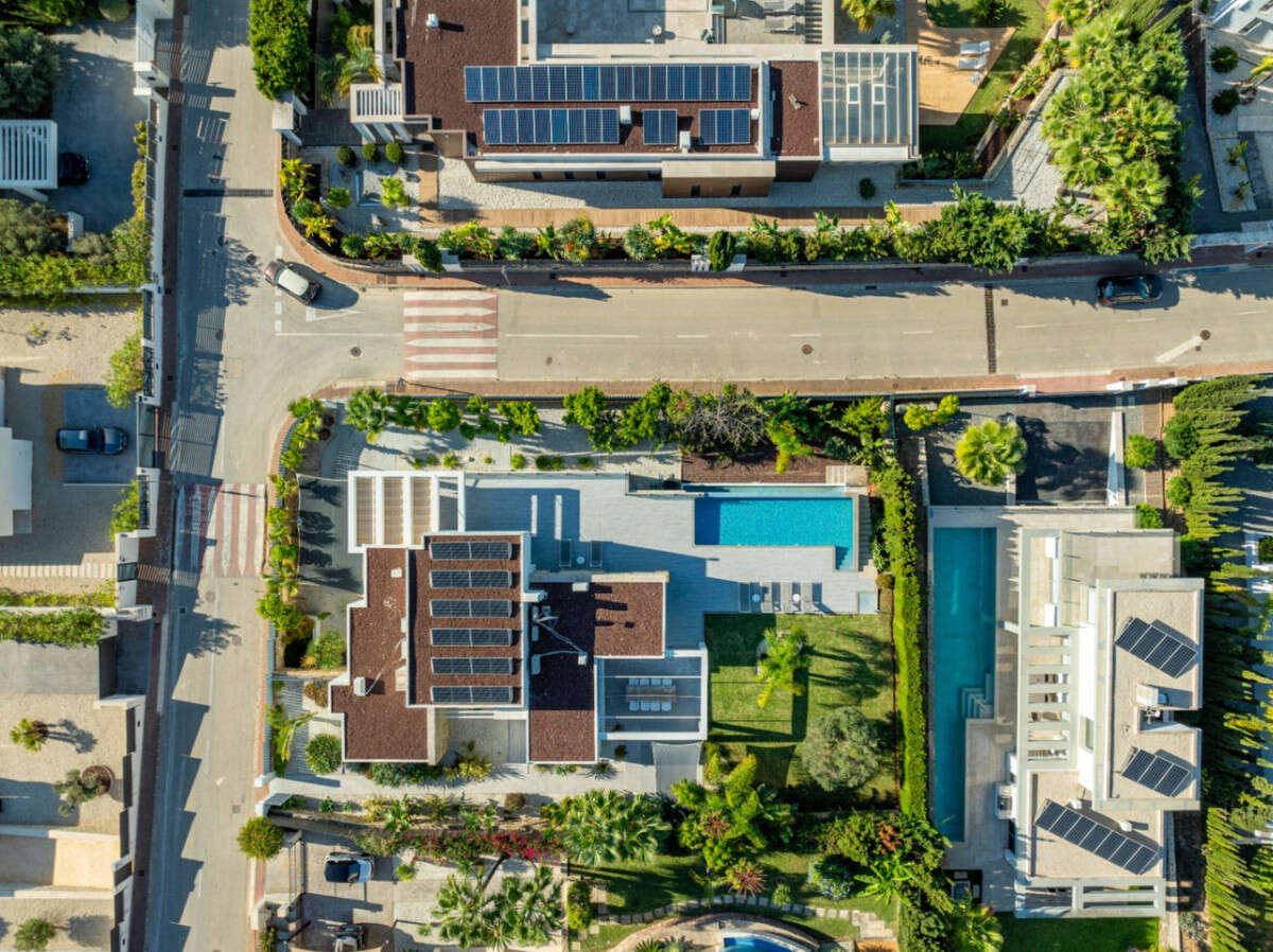 On the lower level, the villa has two further bedrooms, a shower room and lounge, a versatile space ideal for larger families and guests. In addition, there is a home office, cinema room and a large laundryrooom, centralised air-conditioning, parking for 2 cars and open and covered terraces.