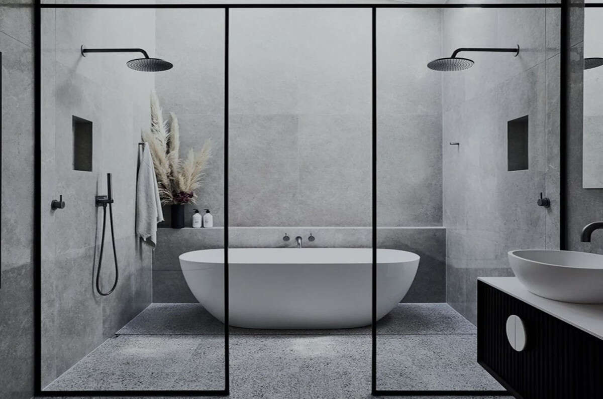 - Bathroom walls covered with COVERLAM wall plates