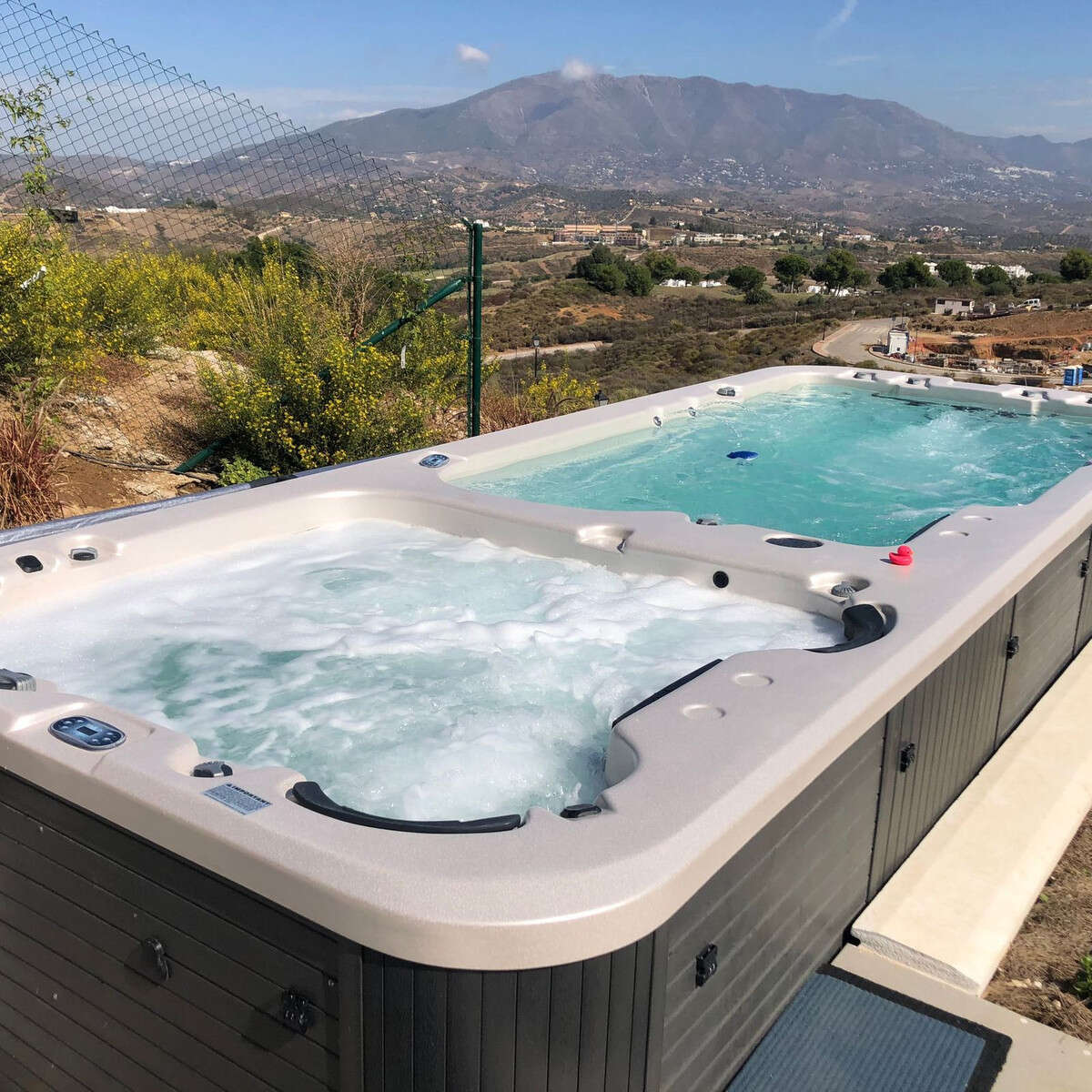 Outdoor living is equally impressive, with a private garden and jacuzzy with a portable pool but there are 2 projects to build a proper 15m x 4m swimming pool, and a terrace area spanning 41m² that offers panoramic views of the surrounding mountains and countryside. The property also includes a covered terrace, a ground floor patio, and an uncovered terrace, providing multiple spaces for relaxation and entertainment. A private garage adds to the convenience, while the presence of a barbeque and jacuzzi further elevates the outdoor experience. The villa's location is ideal, being close to amenities such as shops, schools, and playgrounds, as well as proximity to the beach, golf courses, and the town centre.