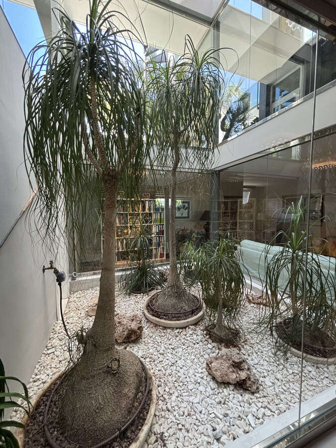 The villa features 5 spacious bedrooms, including a separate guest bedroom in the basement with its own private entrance — ideal for visitors or staff. A standout feature is the glass wall inside the home, showcasing an indoor garden that brings a touch of nature indoors.