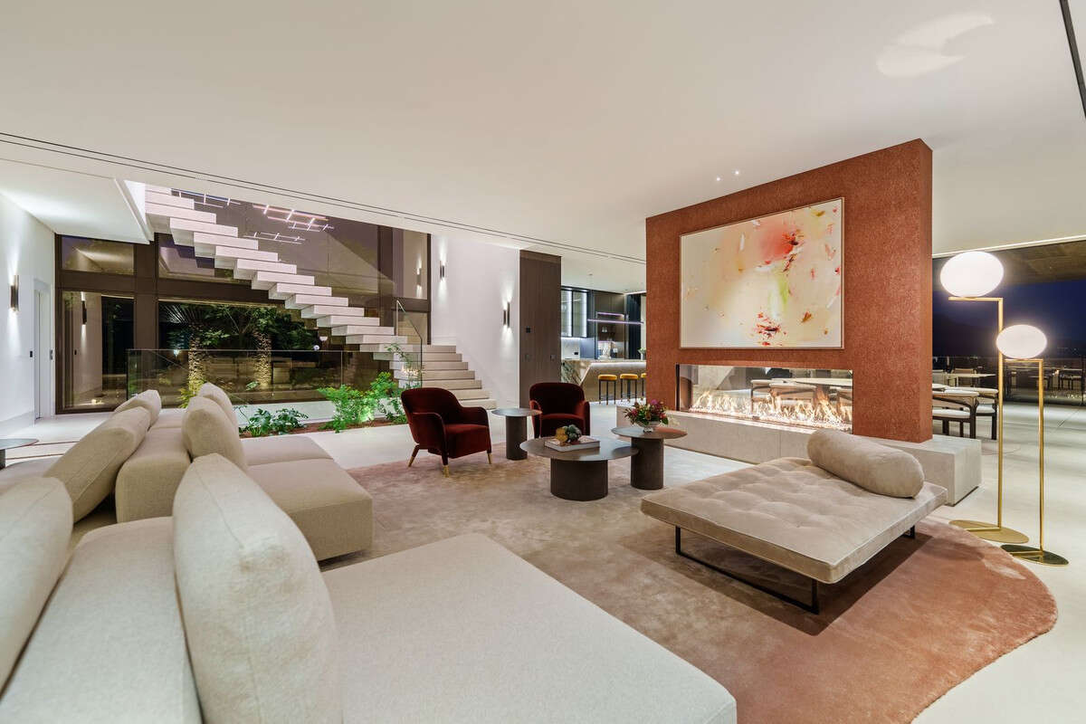 The property boasts ample driveway access and an outdoor area ideal for al fresco cooking. On the first floor, you'll find three additional bedrooms with en-suite bathrooms, as well as a luxurious master suite of over 70 square meters, including a walk-in closet, a lavish bathroom, and a private terrace with a jacuzzi. For those seeking entertainment, the lower level offers nearly 800 square meters of versatile space, illuminated by expansive windows that frame spectacular views. Here you can enjoy several lounges, a games room, a cinema, a gym, and an indoor spa with a pool and jacuzzi.