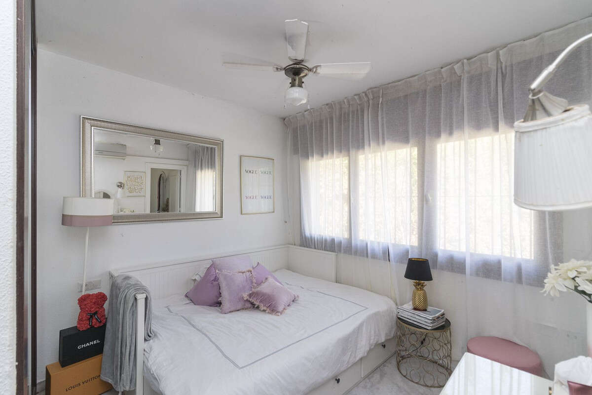 The property is divided into 3 floors, garden, basement and private pool. The 1st floor is very spacious and bright and consists of 1 living room, 1 fully equipped kitchen, 2 bedrooms with fitted wardrobes and 2 en-suite bathrooms. From the living room there is access to a very nice terrace with views of the Mediterranean Sea. The 2nd floor is almost a small copy of the 1st floor, only changing the kitchen, which is open. From the 2nd floor there is access to another covered terrace with views of the garden and the swimming-pool.