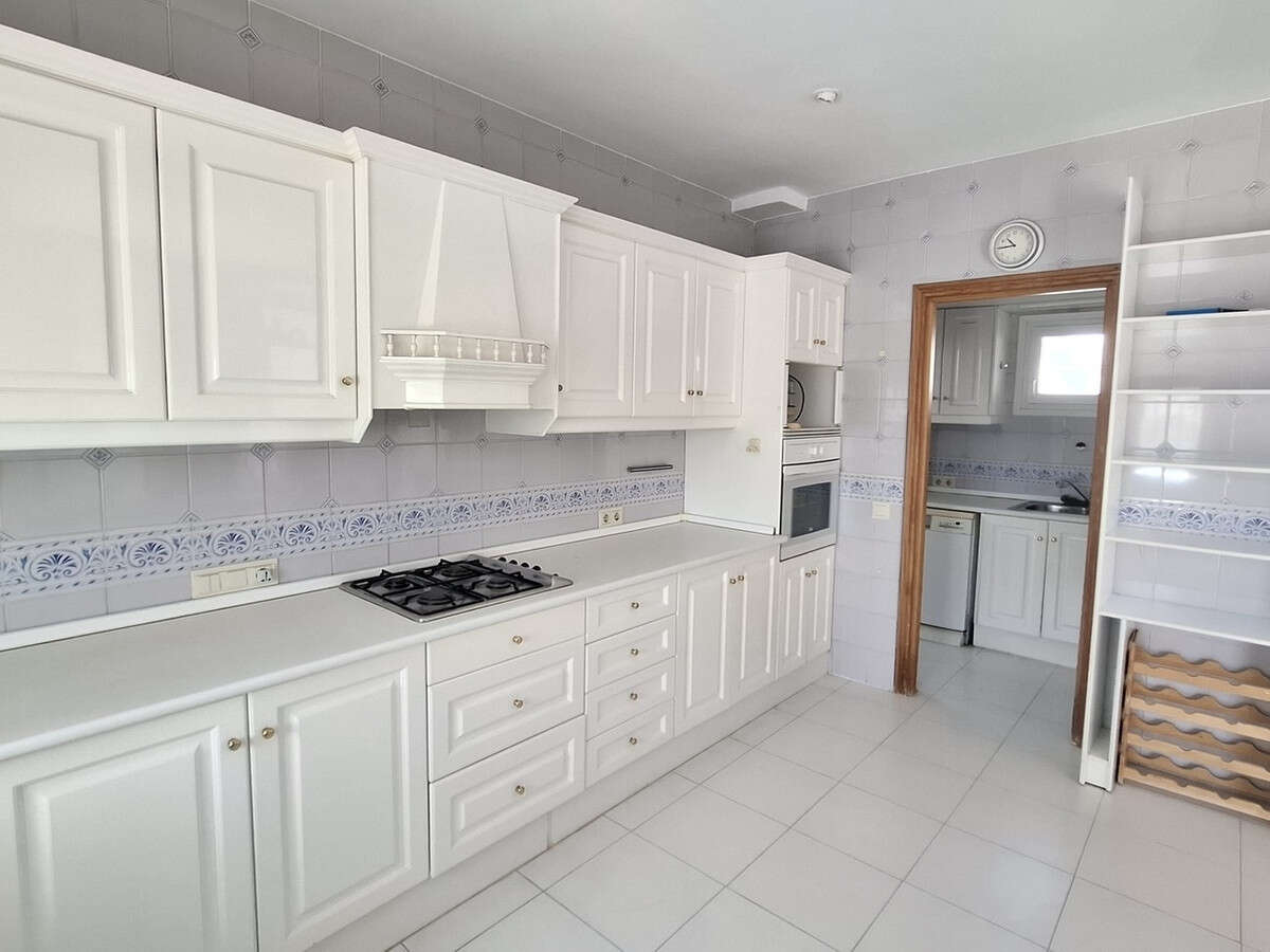 From here you can access the open plan dining room and kitchen. A lovely light space thanks to the two sets of double glass doors that will take you out to both the front patio area and the rear patio where you will find the pool.