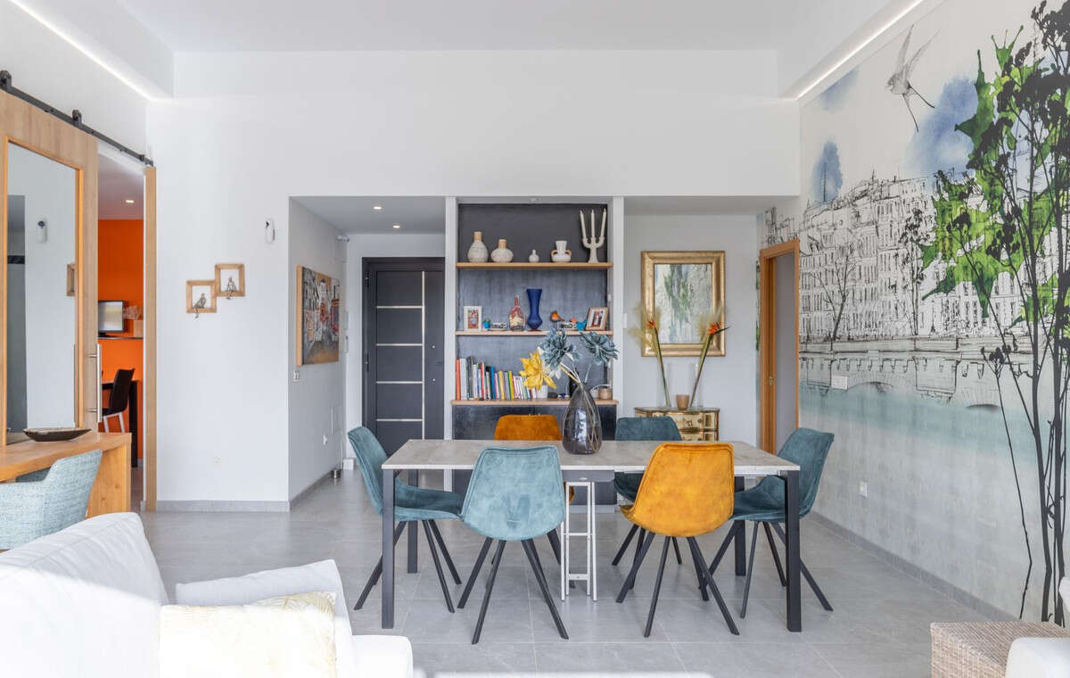 An elegant living-dining area.