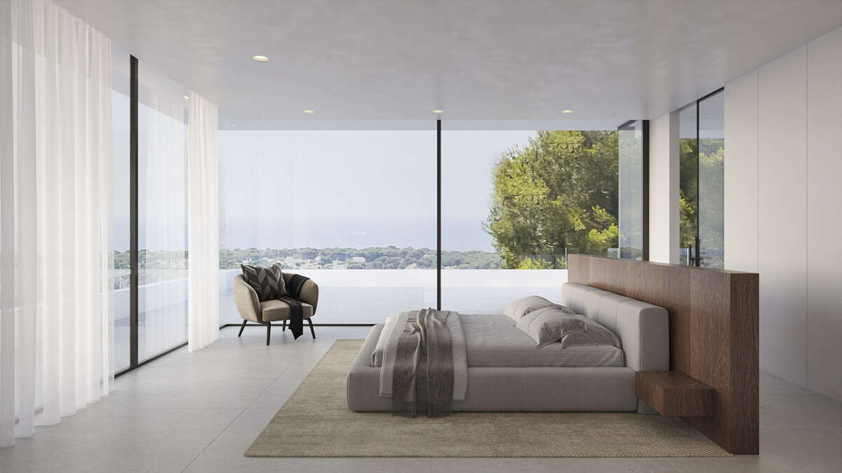 The upper floor is dedicated exclusively to the master bedroom, a crowning space at the top of the home that offers magnificent panoramic views of nearly 240 degrees.