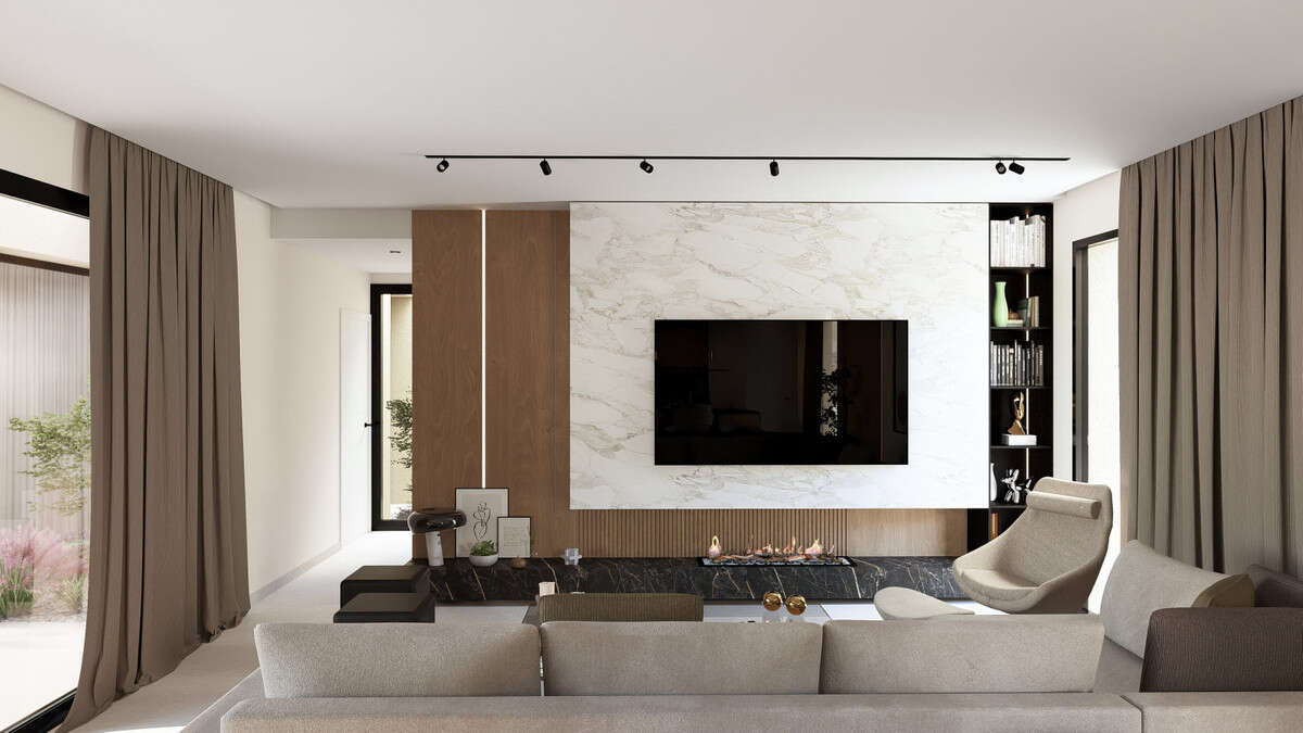 Set on generous plots of more than 1,000 m², the villa expresses direction and balance through clean lines and natural textures. Wood, stone and glass come together in a composition that feels open yet sheltered, modern yet timeless.