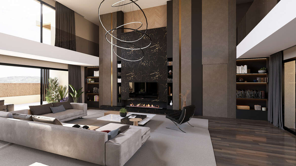 Set on expansive plots of more than 2,000 m², the villa unfolds as a sculptural composition of geometry and glass where every element is crafted to achieve harmony with the landscape. Natural materials such as wood, stone and marble shape an atmosphere of calm sophistication while large open interiors invite light to move freely throughout the day.