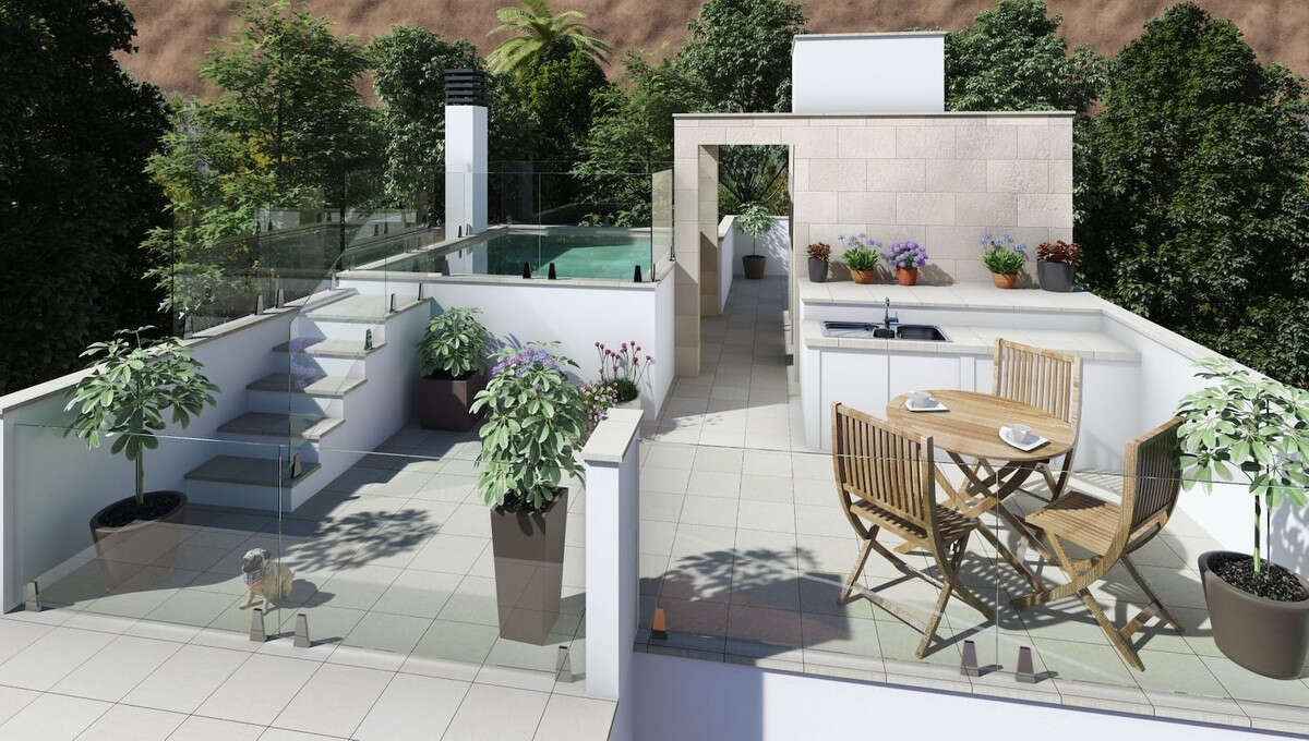 Rooftop terrace: Private pool and sunbathing area for enjoying the Mediterranean climate and views in total seclusion.