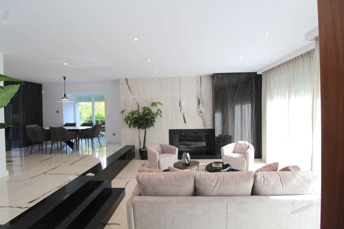 The villa build with high standard quality, has 5 bedrooms all en suite with full bathrooms, a spacious and luminous living room with direct access to the terrace that leads into the garden and the swimming pool. The property has a basement, special place for gym or games room, fully fitted large kitchen/utility room.