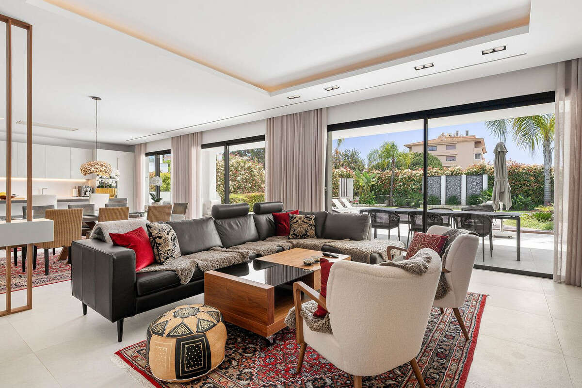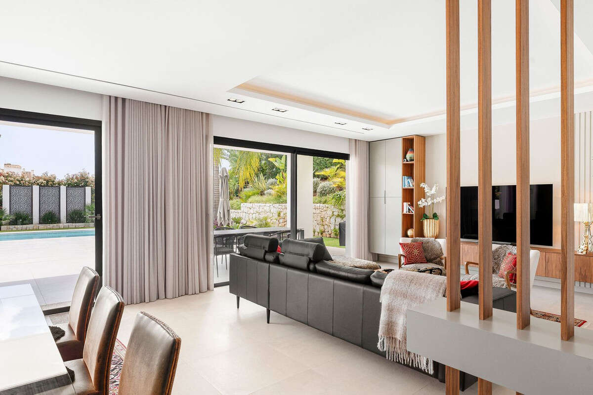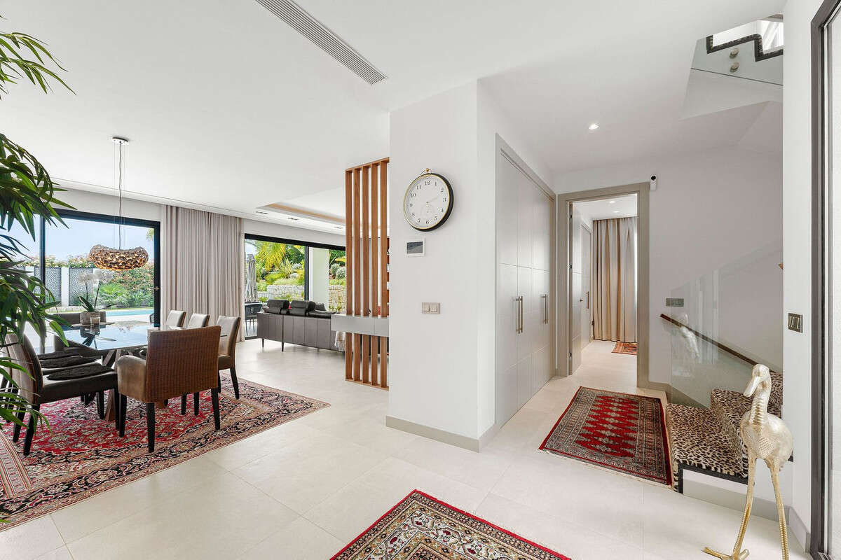 Welcome to this modern and very well built house in the lower Nueva Andalucia area. As you enter you are greeted with a large open kitchen that leads to the dining and living area, from here you can access the large covered terrace and onto the pool area with ample space for sunbathing and with an outdoor shower. On the main floor you have a bedroom onsuite currently used as an office. On the first floor you have 3 bedroom onsuite, all with access to a covered terrace. From here you have stairs leading onto the solarium which has been fitted with solar panels yet leaving space to create an entertaining space. In the basement floor floor you have the laundry area, a 2nd guest toilet, a bedroom suite, a large room that could be used as a cinema room etc and lastly a large garage for up to 4 cars. All floors are accessed by stairs or an elevator. The technology in the house is modern with water based underfloor heating powered by aerothermic system, the ac is thorugh the Airzone system, water filters & solar panels make this house very efficient to live in. A house in a very central position makes this a perfect all year living or a holiday home with the added bonus of being an attractive rental property due to its size and location.