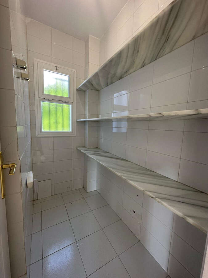 The fully fitted kitchen is spacious and has an adjacent pantry, 2 large windows, plus access to the garden. On this level, you will also find a guest bedroom with an en-suite bathroom, in addition to a guest toilet.