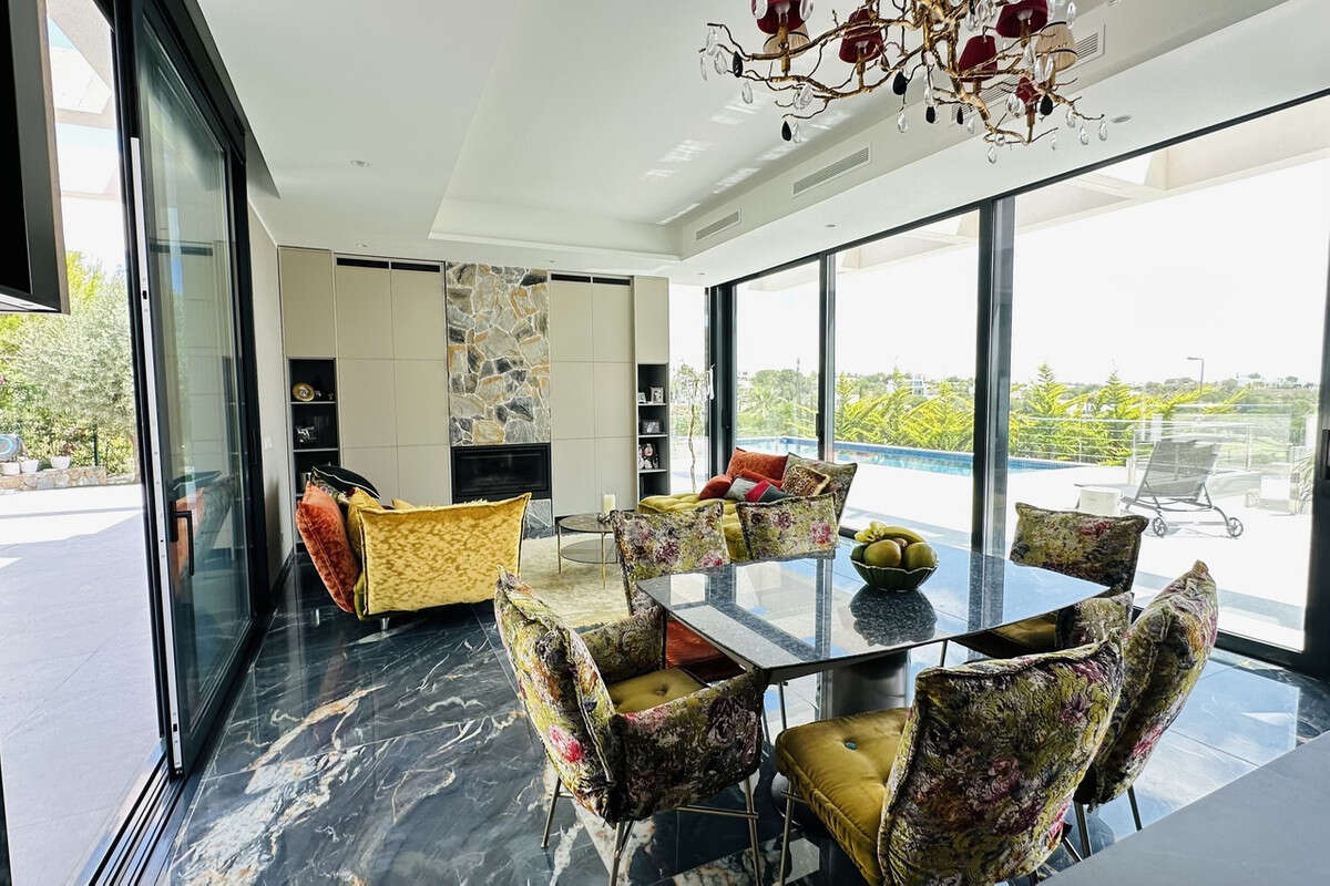 Set on a private plot with breathtaking views over the golf course, this villa features 6 generously sized bedrooms, 4 full bathrooms, and an additional guest toilet — ideal for large families or entertaining guests. The sleek, modern architecture is complemented by high-quality finishes and natural materials throughout.