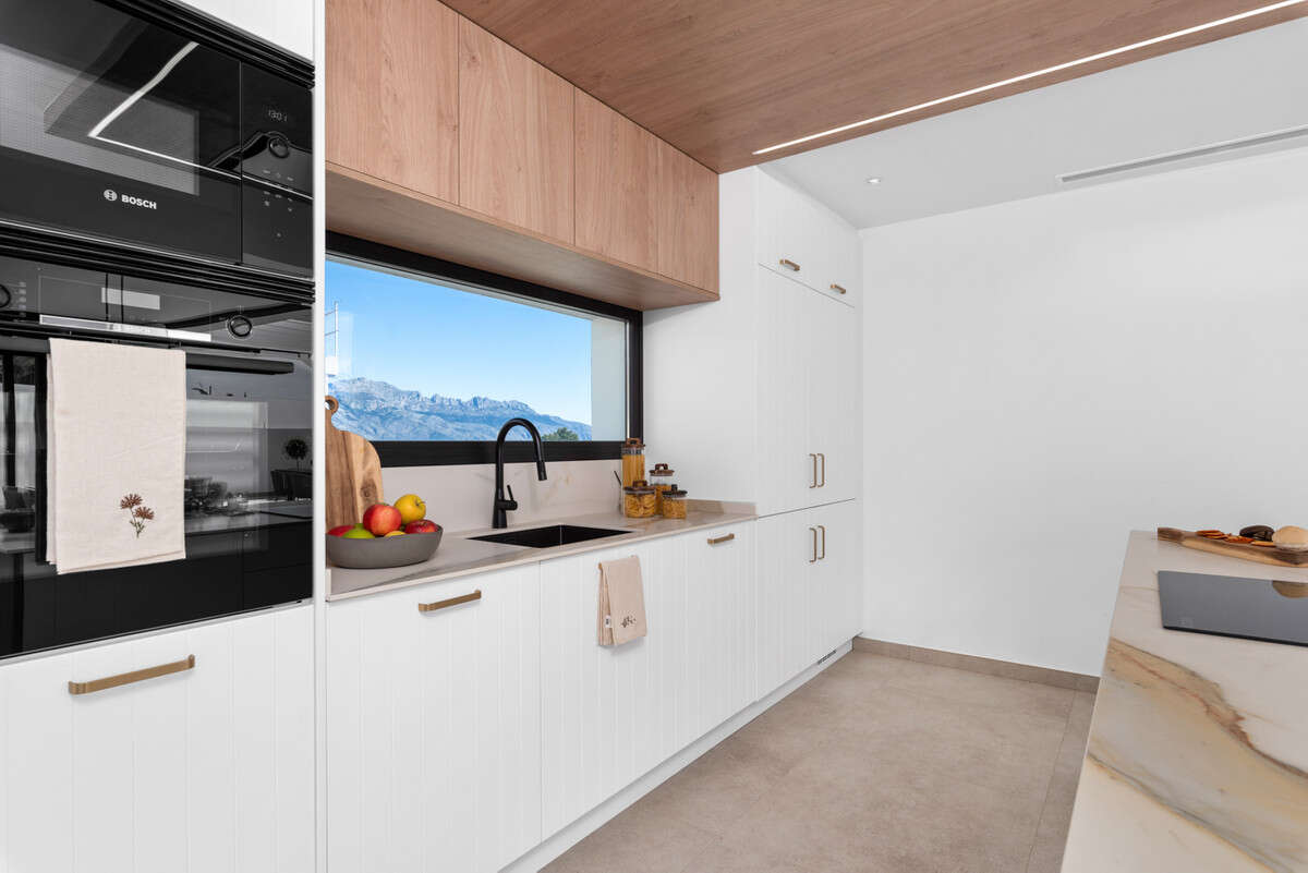 Plots ranging from 365.80 m² to 680.50 m² in Camino de la Solana, Polop (Alicante). Homes with a built-up area of 311.35 m². With 4 bedrooms, 4 bathrooms, and 1 toilet. Private pool of 3 x 10 m.