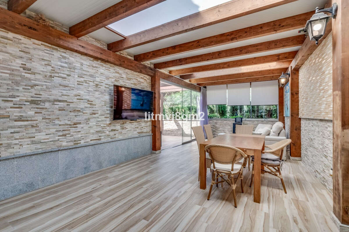 This luxurious four-bedroom villa, located in the peaceful area of lower Artola / Hacienda Las Chapas, just 5 minuntes walk to the sea, is the epitome of elegance and comfort. Boasting a classic design with high-end finishes, the property features an abundance of marble, adding to its opulent charm. The interior is bathed in natural light, enhancing the meticulously crafted details throughout the home.