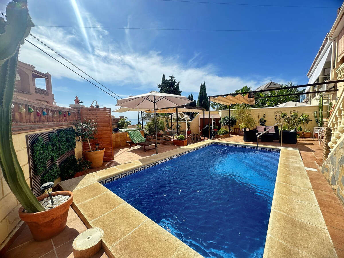 A magnificent property located in an exclusive residential area of ?€??€?Serramar, ideal both as a permanent residence and for enjoying holidays on the Costa del Sol. The house has 3 spacious bedrooms with built-in wardrobes, including a master suite with a dressing room, a large private terrace, and spectacular views. The bright living room is approximately 35 m² and features a fireplace, a security shuttered window, and direct access to a sunny terrace with views.