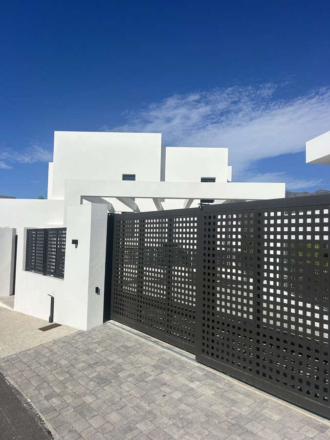 Key design elements include spacious open living areas and large windows for maximum natural light and increased space. Full-size windows can be hidden in the walls, connecting indoor and outdoor living areas, allowing you to enjoy Marbella's unique climate throughout the year. The plot is carefully planned and beautifully landscaped, consisting of two parts, with a patio in addition to the main area. There is a large private parking area for three cars.