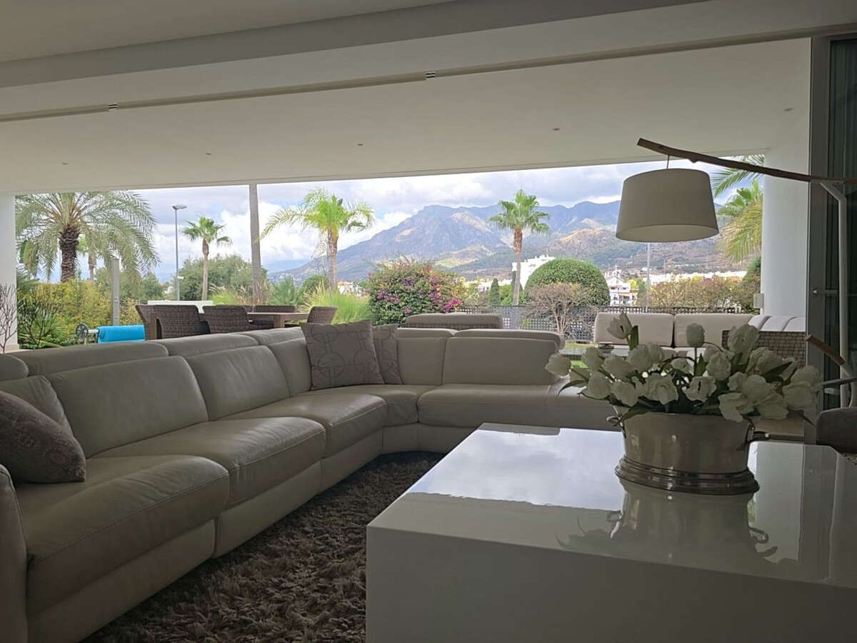 This luxurious modern villa is located in the residential community of Río Real "La Finca de Marbella", 15 minutes walk from the beach ("Trocadero Arena" restaurant), 5 minutes by car from the center of Marbella and 15 minutes from Puerto Banús. The 3-bedroom villa is made up of two levels, 2 bedrooms on the second floor with a large terrace with spectacular mountain-, city- and partly sea views and 1 bedroom on the ground floor. Each room is equipped with elegant furniture and a private bathroom. The ground floor offers a large living and dining area connected to the open plan kitchen. The floor-to-ceiling windows allow the interior and exterior areas to be integrated, making it especially pleasant. The villa has its own private heated pool, closed private parking for 2 cars and tropical plants throughout the garden. Underfloor heating, air conditioning, alarm system and cameras, all for the comfort of living.