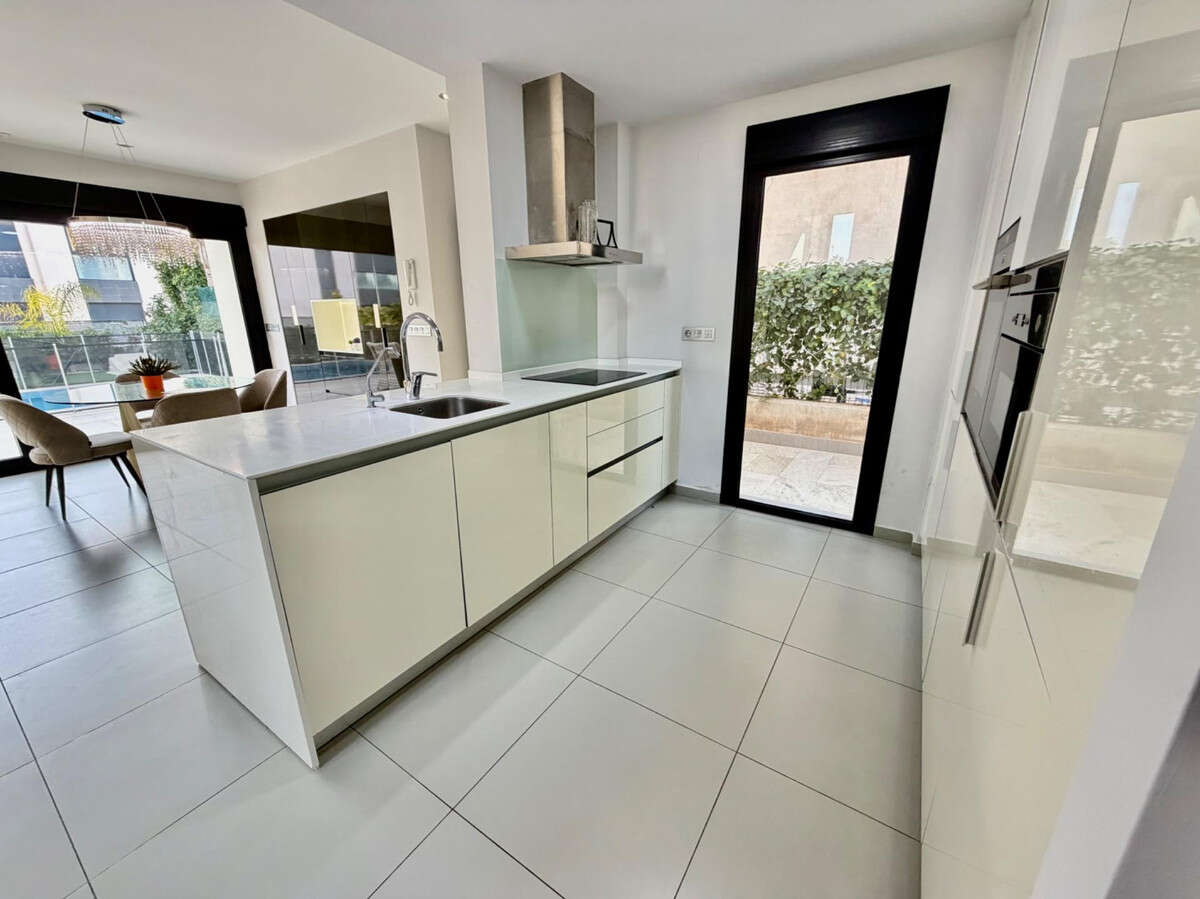 We are pleased to offer this beautiful modern detached villa, set in a quiet and well-located residential area. Designed for comfort, privacy, and easy Mediterranean living, this home is ideal for both permanent residence and holidays.~~Built in 2014, the villa sits on a 300 m2 private plot and offers 125 m2 of living space. The main floor features a bright open-plan living and dining area with a contemporary fully equipped kitchen, a master bedroom with dressing area, a full bathroom, and a guest toilet — all with direct access to the garden and private swimming pool.~~Upstairs, there are two spacious bedrooms, a complete bathroom, and access to a private terrace. From here, an external staircase leads to a large rooftop solarium, perfect for relaxing, sunbathing, or enjoying evenings with friends.~~The property has underfloor heating, central air conditioning, is sold fully furnished, and includes private parking. The landscaped garden and pool area create a peaceful space to enjoy the outdoor lifestyle all year round.~~A stylish, ready-to-move-into villa that offers comfort, space, and a true Mediterranean feel.