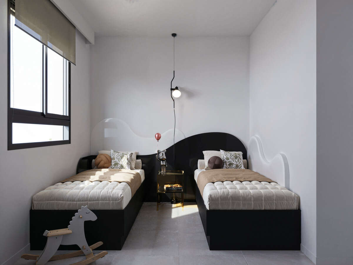 A fully gated community with communal swimming pools for adults and children, green areas, and a children's playground.
