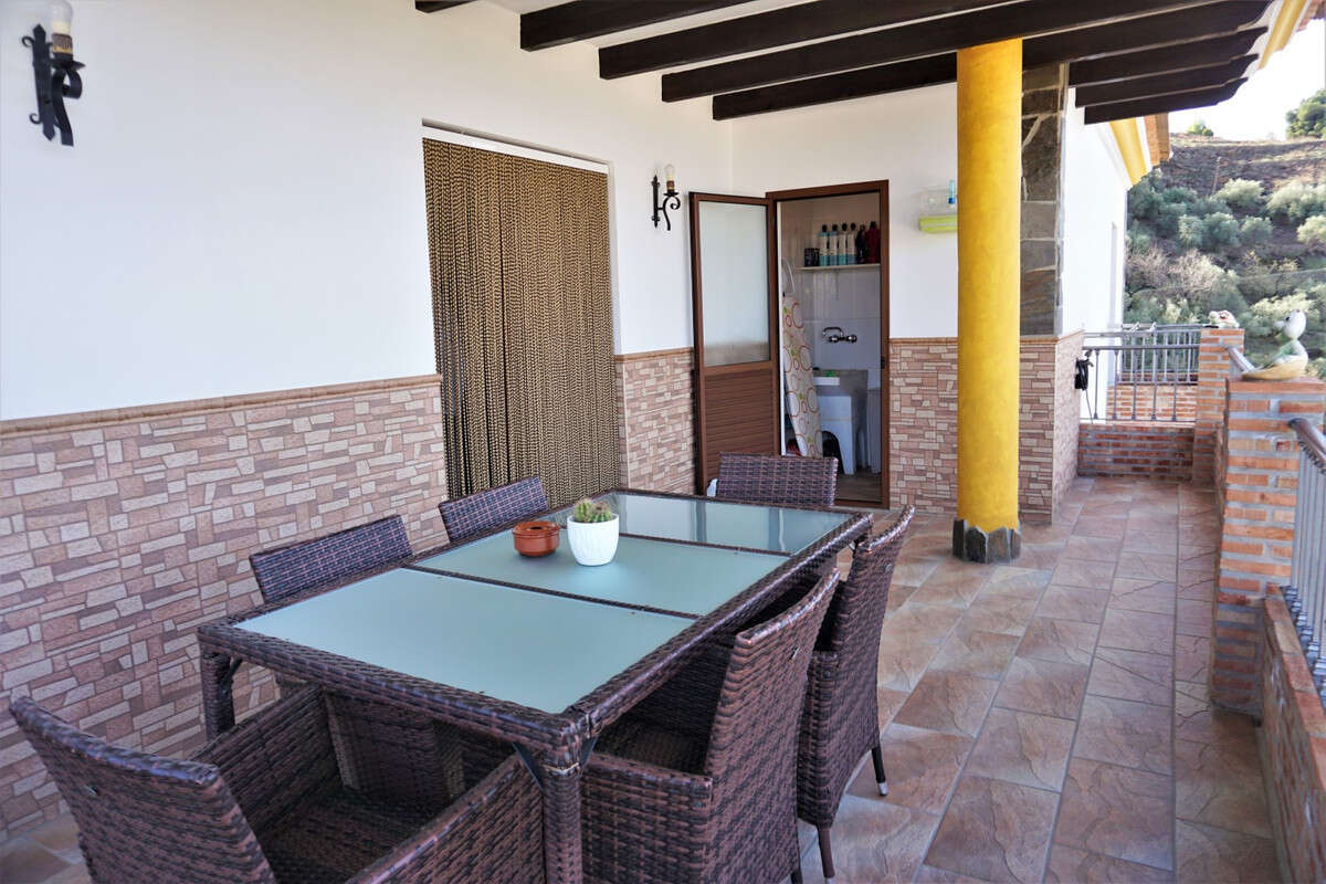 Magnificent villa located only 5 minutes walk from Sayalonga's centre. Fully paved access at street level with beautiful views over the village. The villa has a built area of 330 m2, which is divided into 2 floors. On the upper floor, we find a spacious living-dining room connected to a great terrace, ideal for any occasion. Here we can also find a laundry area. The property has an independent and well-furnished kitchen with pantry. Furthermore, there is a guest bedroom right next to a long hallway leading to the bedrooms and a bathroom. The master bedroom has a large walk-in closet, an en-suite bathroom and a lovely little terrace which ensures the same views as the previous one. It has air conditioning hot/cold and heating system in the bathrooms. Downstairs, we reach a large guest flat where there is space to set up any kind of celebrations. It has a bedroom and a bathroom. Moreover, this level links to a garage used as a gym area, where you can park more than two vehicles. Outside, the plot has an approximate size of 5000 m2, with a perfect area devoted to a private swimming pool, equipped with loungers and a storage room with a water boiler. It also has a barbecue area with several fruit trees in production: avocados, lemons and oranges. In addition, there is a registered well that produces 50.000 litres of water per month, with mountain water. Would you like to discover this property with us? We are pleased to be able to present this dream property to you soon, either personally or via virtual viewing. Because this world, it is unique - just like our Axarquía. In Andalusia. On the Costa del Sol. Here, on the sunny side of life...