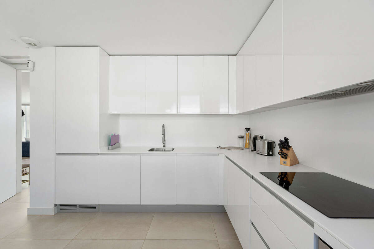The middle floor is the home's centerpiece a dramatic, light-filled living and dining space framed by a wall of floor-to-ceiling glass that fully retracts, blurring the line between interior and exterior. Perfect for entertaining, this level also features a sleek, fully equipped designer kitchen, a powder room, and direct access to the covered garage for convenience.