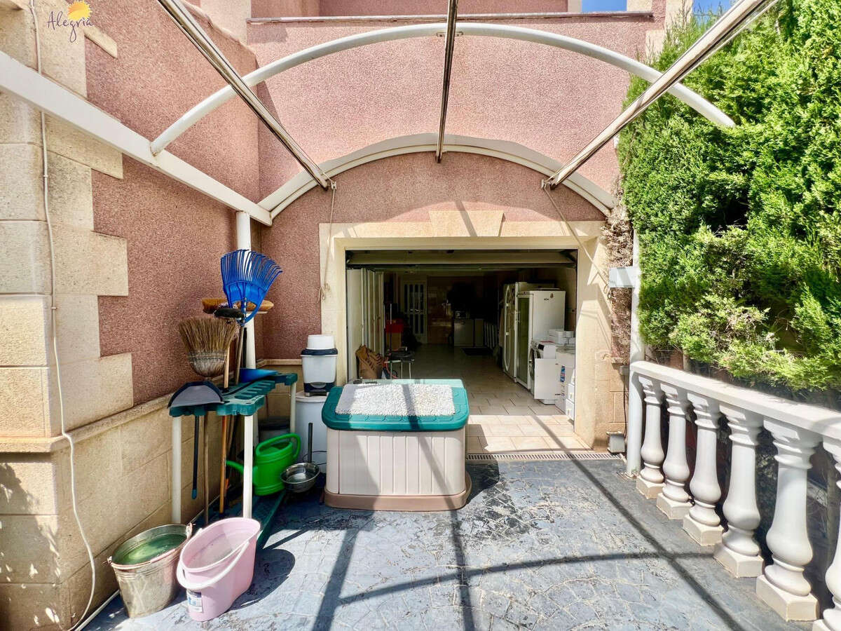 Discover this stunning villa located in the coveted area of Los Balcones, just 1.6 km from the splendid beaches of Torrevieja. This property boasts a generous built area of 151 m2 on an extensive private plot of 367 m2, providing an ideal space for outdoor enjoyment. The villa features three spacious double bedrooms and two full bathrooms equipped with windows for better ventilation, as well as a practical additional toilet.The upper floors house two cozy bedrooms complemented by private terraces ideal for enjoying clear views.Designed with modern comfort in mind, it includes a fully equipped kitchen and a bright living room that opens to outdoor spaces perfect for relaxing or entertaining. Its south orientation ensures abundant natural light throughout the day while the high ceilings add even more spaciousness.Outside, you will find attractive garden areas adorned with fruit trees next to the private pool where you can refresh yourself under the Mediterranean sun; there is also a barbecue perfect for family gatherings and a closed garage included that offers extra convenience.In this well-connected villa, you will have quick access to essential services including schools, banks, and hospitals, where every corner is designed for both investing and establishing your home. You will also have extras such as heating, pre-installed central air conditioning ducts, and an alarm system. Live in a select environment!