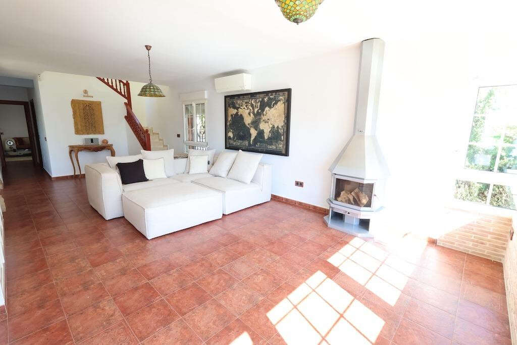 Detached villa located in one of the best areas of Villamartín, just a few meters from the entrance to the golf course. With a constructed area of 189 m2 spread over two floors plus a basement, and a 240 m2 plot, this property offers spaciousness, comfort, and excellent orientation.. . The home has a total of 4 bedrooms and 3 bathrooms. On the ground floor, we find a bright, generously sized living-dining room, a spacious, fully equipped independent kitchen, a bedroom, and a full bathroom. Upstairs is the master bedroom with a dressing room, en-suite bathroom with sauna, and a large terrace with unobstructed views.. . The basement, with independent access, has two additional bedrooms, a full bathroom, and a second living room, ideal for guests or as an additional private space.. . Outside, the property offers a private garden, driveway, barbecue area, and a relaxing jacuzzi located at the rear, perfect for enjoying the Mediterranean climate.. . It is sold furnished and equipped with air conditioning. An ideal home for both permanent residence and vacation, in a prime location close to golf courses, amenities, and beaches.