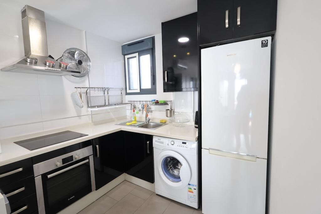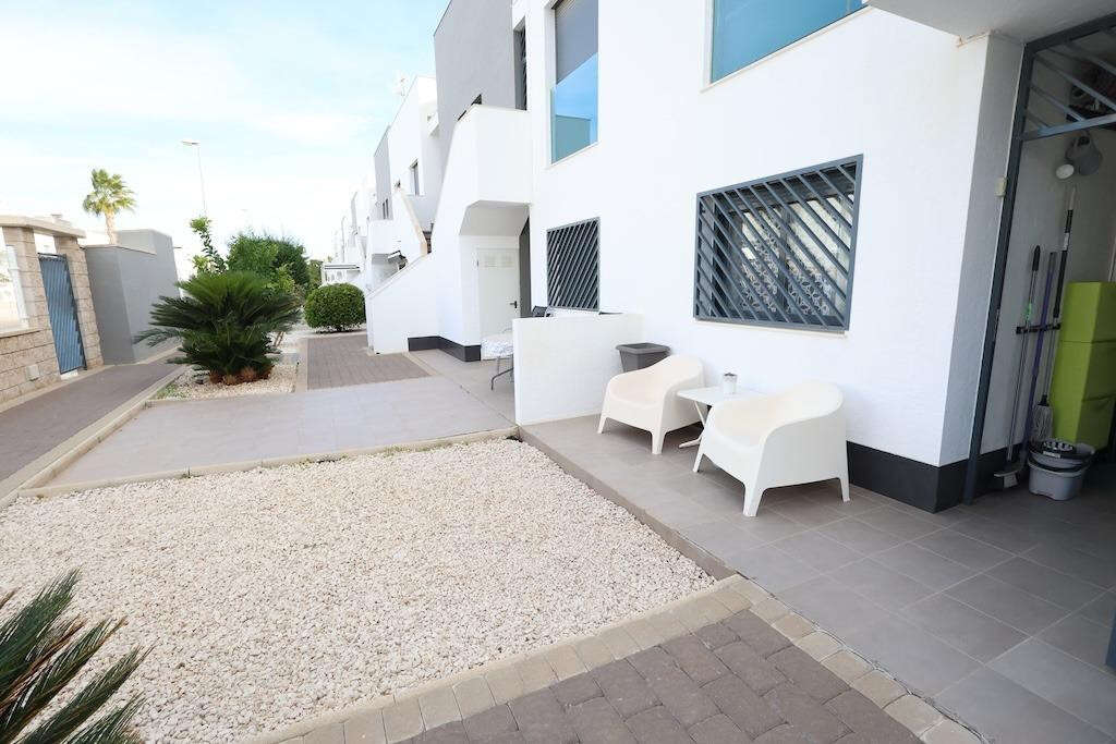 La Zenia, Oasis Beach II Residential. Ground-floor bungalow with South-East orientation, featuring 70 m2 of living space and a 13.50 m2 glazed terrace. The property offers 2 bedrooms, one of them en-suite, 2 bathrooms, and an open-plan kitchen connected to the living room. It is sold fully furnished and equipped with ducted air conditioning.. . The property also includes its own underground parking space. The residential complex boasts extensive landscaped areas, a beautiful swimming pool, a children's play area, and more.