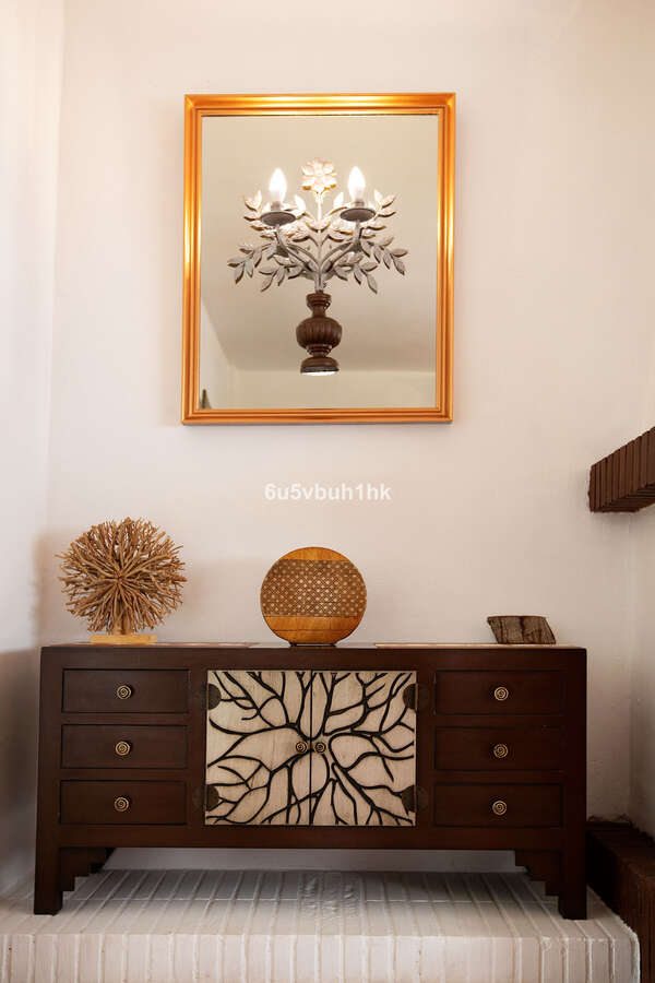 The property also features inviting outdoor living spaces with a private pool, surrounded by Mediterranean plants in large pots that add greenery and charm while keeping maintenance simple. An additional exterior-access space, currently used as a covered garage, offers flexible options — easily adapted into a workshop, studio, guest room, or extra storage.