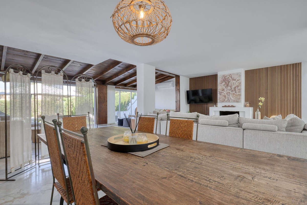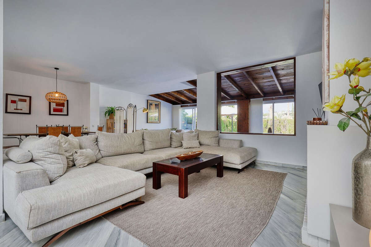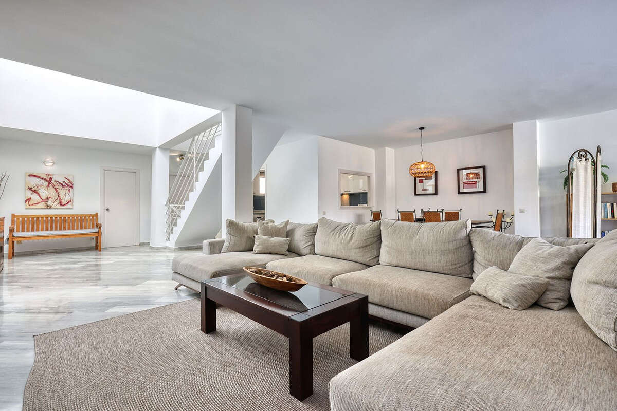 Upstairs are 3 more bedrooms, master with reformed en-suite, terrace with sea view and overlooking the pool and tennis courts. The other side are 2 more bedrooms, one with a large terrace and a shared bathroom. Large open plan landing area with natural light coming in through the partial glass ceiling. The property will come fully furnished and makes a perfect family home in a quiet extremely well maintained community.