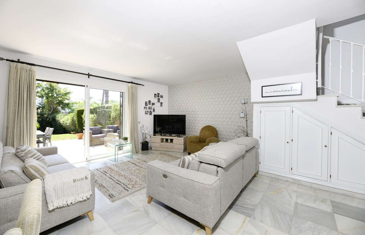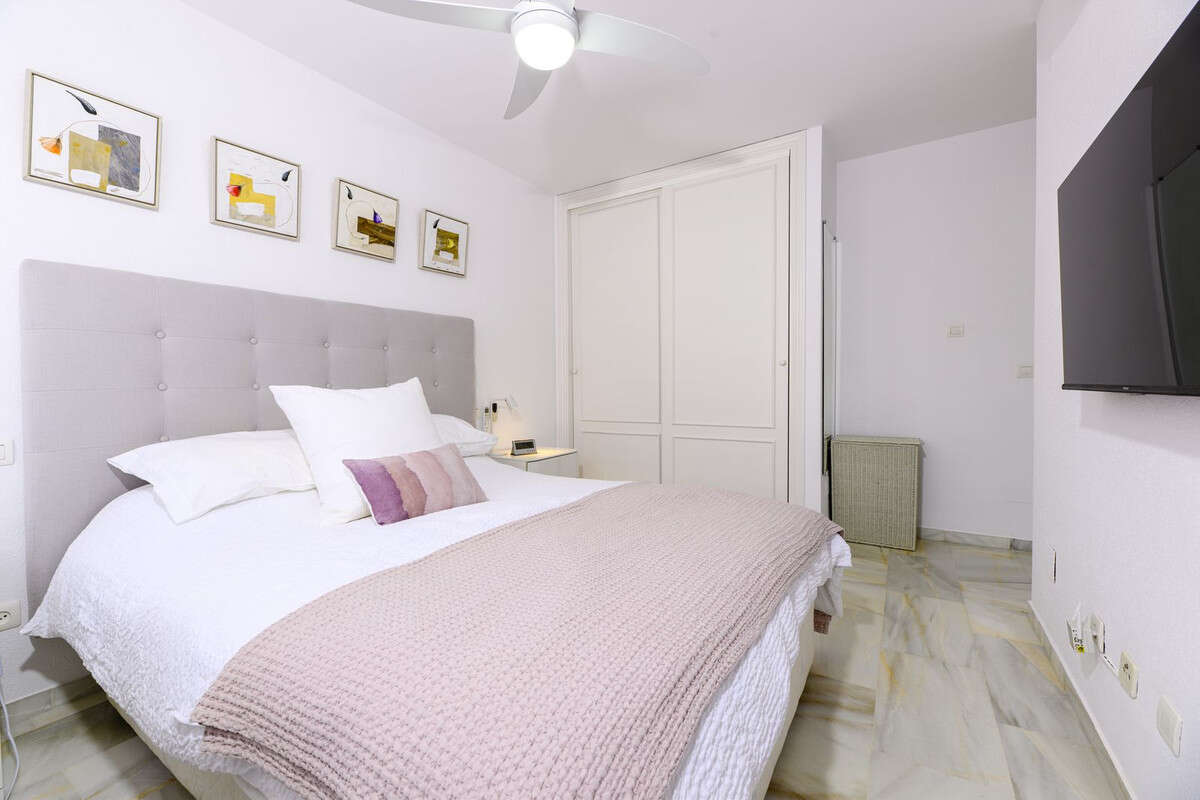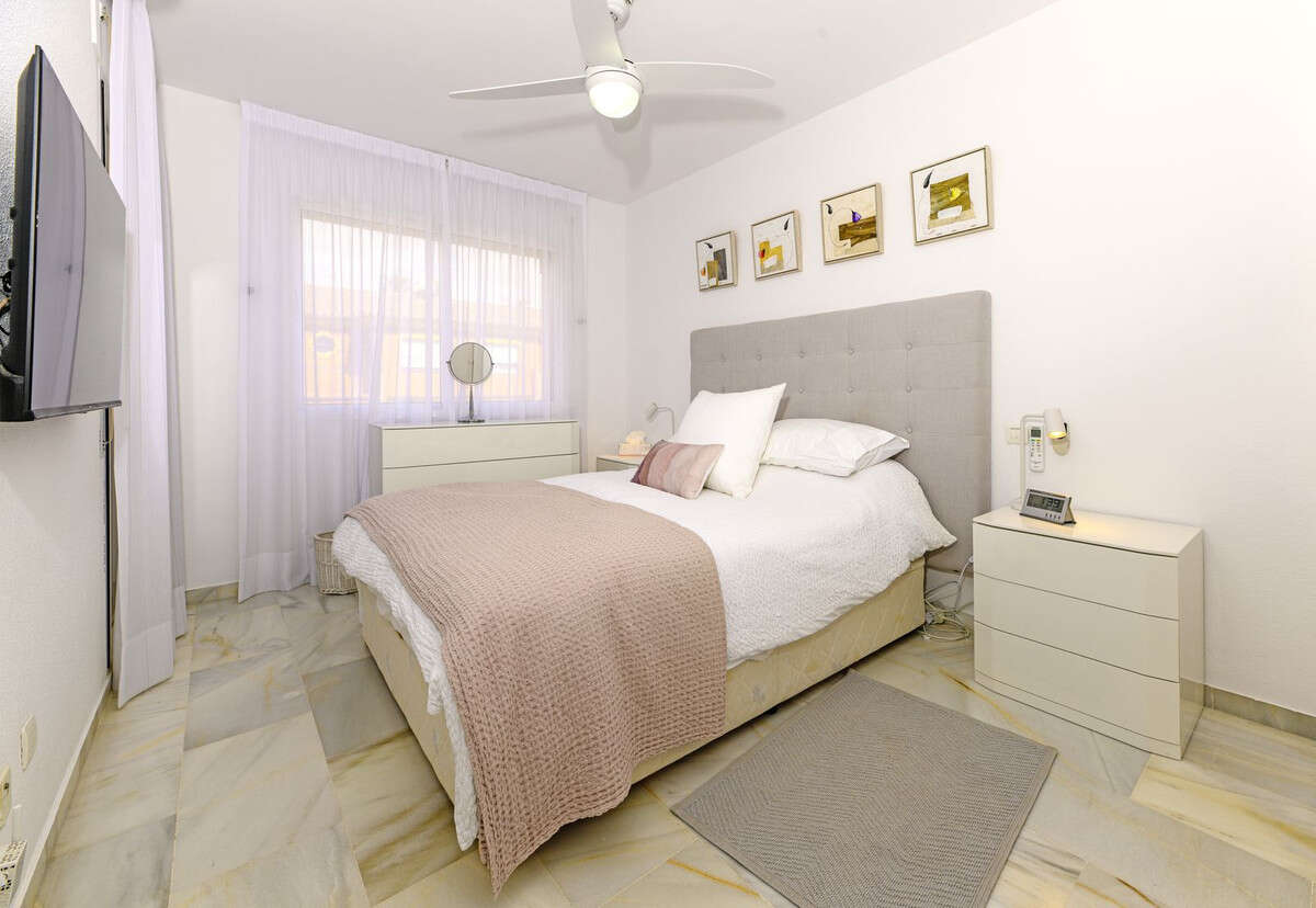 THE PROPERTY: Three generously sized bedrooms with fitted wardrobes, two stylishly renovated bathrooms (including an ensuite master), and a fully equipped kitchen with dedicated laundry room. But the real showstopper? A magnificent 207m² south-facing garden and terrace that bathes in sunshine from dawn to dusk—perfect for alfresco dining, children's play, or simply soaking up the Costa del Sol lifestyle. Plus, enjoy partial sea views from both guest bedrooms.