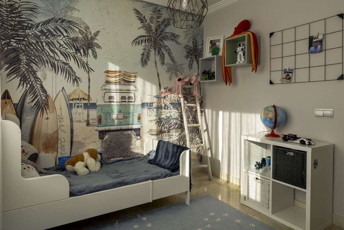 Upstairs, the master suite is a private refuge with an en‑suite bathroom and a large walk‑in closet. Two further bedrooms share a generous bathroom; all bathrooms combine showers and bathtubs for everyday comfort. Built‑in wardrobes and expansive terraces with panoramic views add practical elegance.