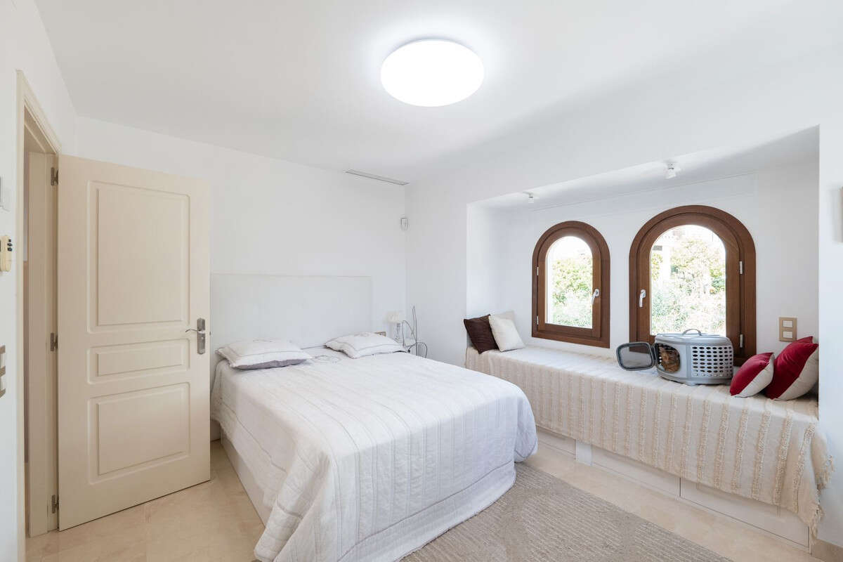 The townhouse includes a total of four bedrooms. Two bedrooms are located on the first floor, and two are in the basement. The master bedroom on the first floor boasts its own walk-in closet and en-suite bathroom. The adjacent bedroom also has its own bathroom. Both bedrooms offer stunning views of the sea and mountains.