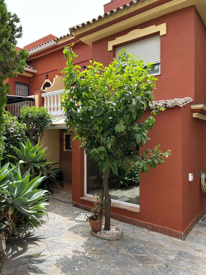 Spectacular corner townhouse in Lomas de Monte Biarritz, between Marbella & Estepona. Just 2 km from the beach and San Pedro de Alcántara, this 203 m² home sits on a 423 m² plot with a private tropical garden. Features include a bright living room with garden access, renovated premium kitchen, 4 bedrooms, 3 bathrooms, and a large solarium. Extras: Kommerling windows, photovoltaic solar panels (warranty until 2029), communal pool & gardens. A private retreat in one of the Costa del Sol's most sought-after areas.