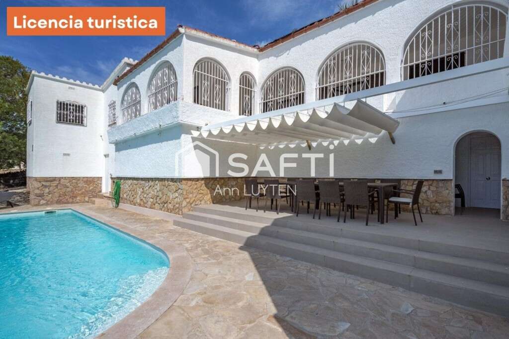 Andalusian-style villa with tourist license located at the foot of the Mas Fumats residential area in Roses, with direct access to a green zone. Its U-shaped architecture surrounds a stunning outdoor area featuring a saltwater swimming pool, terrace, and garden—perfect for enjoying the Mediterranean climate.