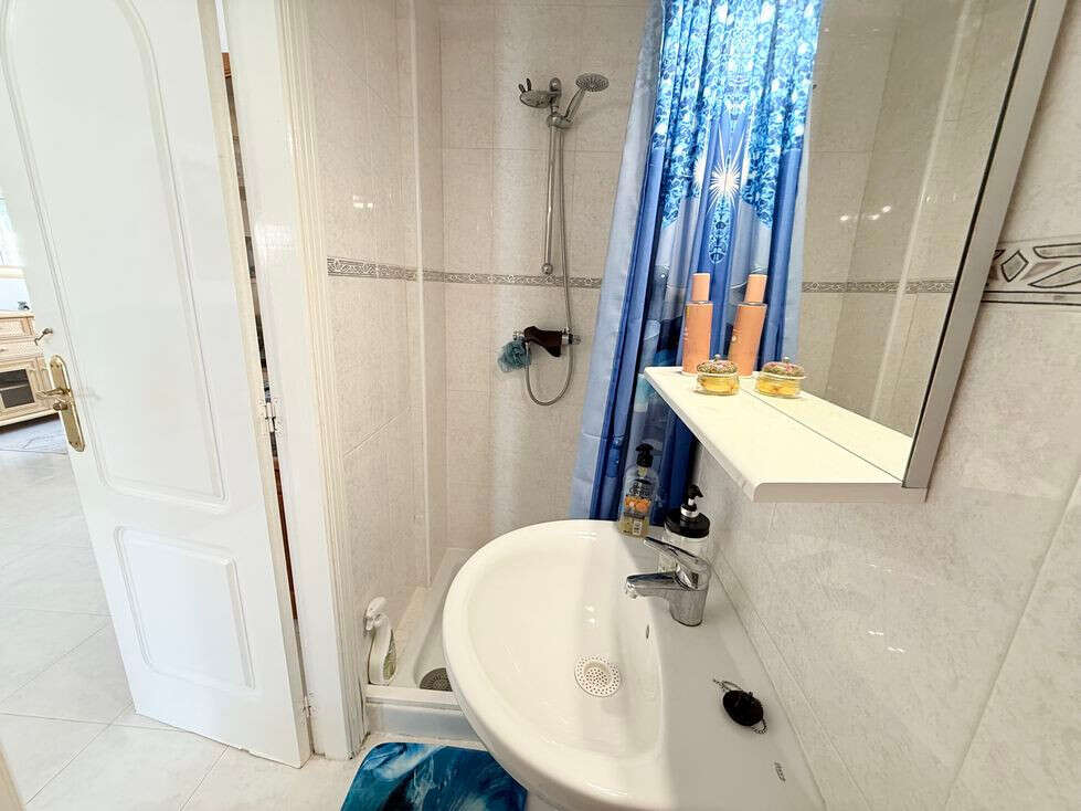 Upstairs, the property offers two spacious bedrooms, both benefiting from their own private balconies that allow plenty of natural light and outdoor space. A large family bathroom with a corner bath serves this floor. Both bedrooms include fully fitted wardrobes and air conditioning, while a new air conditioning unit has recently been installed in the living room downstairs, ensuring comfort throughout the year.