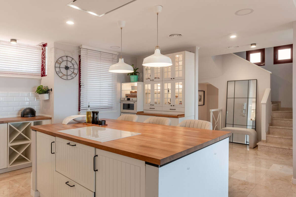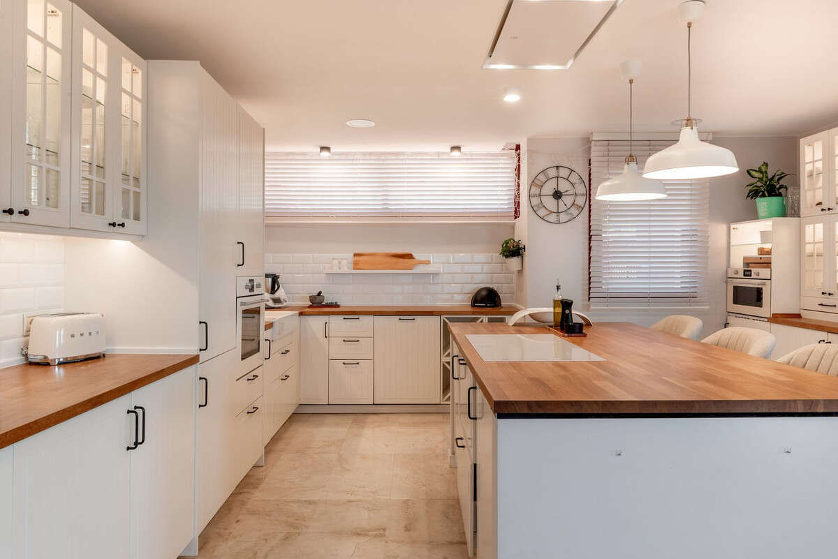 The house has been completely renovated in 2024r and requires no financial outlay. The house is finished with high-quality materials - marble floors and stairs, bathrooms finished with travertine, solid wooden cabinets and interior doors. It is also distinguished by the amount of storage space for comfort. The house is equipped with panels for water heating, air conditioning with cooling and heating, fireplace, watering and garden lighting.