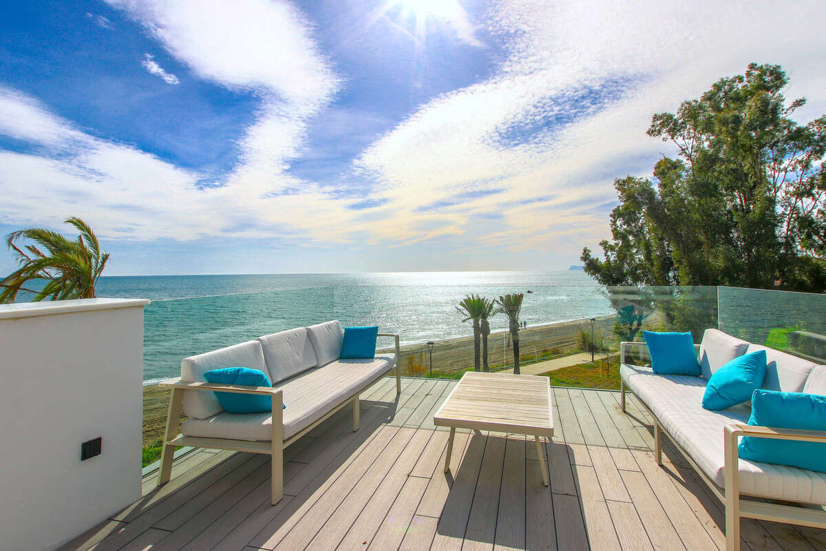 The urbanization offers a secure gated environment with landscaped gardens, infinity pools, a wellness area, and a gym, all just steps away from the sandy beach. Its privileged location gives you easy access to Estepona's charming old town, Puerto Banús, Marbella, and some of the Costa del Sol's best golf courses.