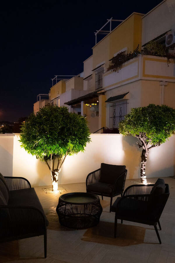 The living room feels open and social, and from here you reach the home's patios - the place where summer evenings, morning coffee and leisure time get an extra golden edge. The balcony on the upper floor is perfect for relaxing, while the terrace on the ground floor invites you to both eat and spend sunny hours. The south-facing location ensures that the home is bathed in light almost all day.
