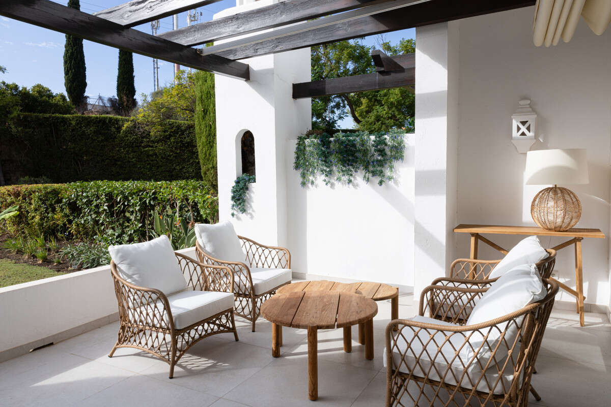 Presenting a beautifully renovated 3-bedroom, 3.5-bathroom townhouse in one of Marbella's most sought-after communities, nestled front-line to the prestigious Aloha Golf Club in the heart of Nueva Andalucía.