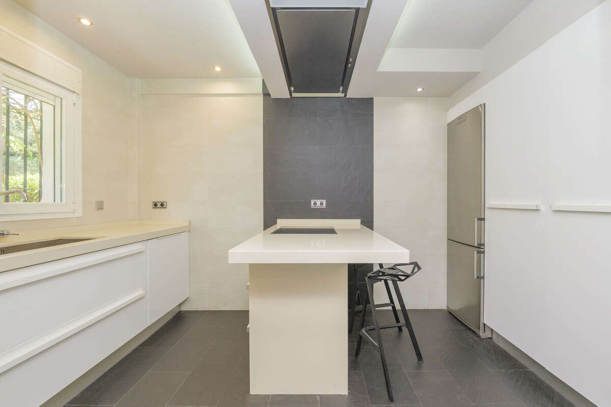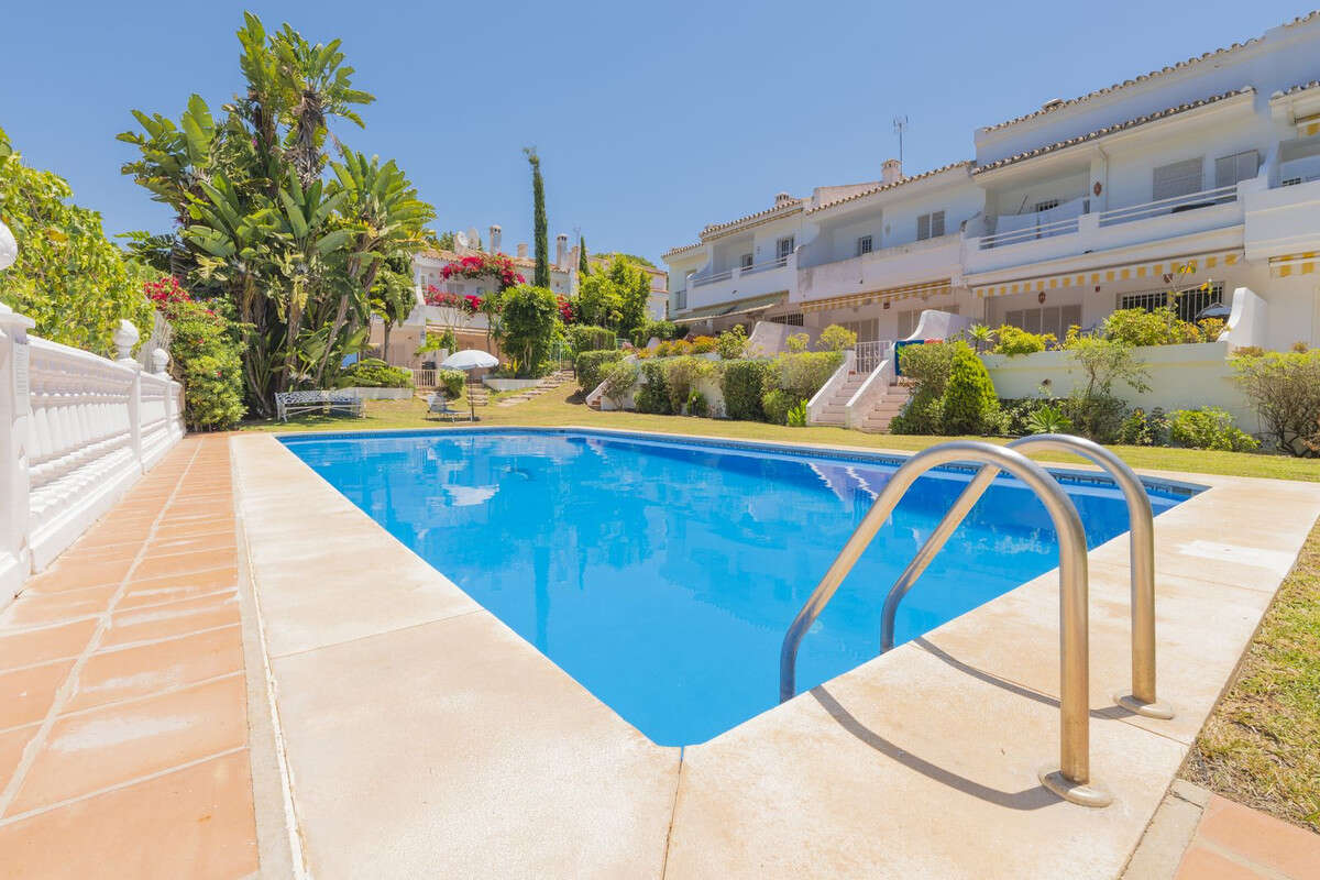 Impressive renovated Town House beachside Artola-Cabopino. This property is nestled in a cosy 16 dwelling urbanization with a gifted location, just 70m from the protected "Dunas de Artola" in Cabopino (sandy dunes protected by law), 200m from the shore and yet with the A7 Road at a mere 2 minutes, hence wonderfully communicated. The house welcomes you through a gated porch, at the entrance we find the lobby that leads to the fully furnished and fitted kitchen with island on the left, guest toilette on the right and storage room; living room with dining area and the stupendous terrace facing the garden and pool. On the first floor, three bedrooms and two bathrooms, one of them en suite plus a small terrace. Eventually, the icing on the cake, a 60m2 superb top floor bedroom with dressing room plus a complete bathroom with bath tube and shower. This property, with underground private parking, has been renovated with attention to detail and features such as underfloor heating in the bathrooms, electric blinds, water softener, numerous A/C hot &cold splits, double glazing throughout, etc. Come and check this example of a Holiday Home that can also be aimed as a First Home as it has amenities and services at hand: pharmacy, shops, restaurants as well as the Port of Cabopino in the vicinity with its plethora of bars and restaurants.