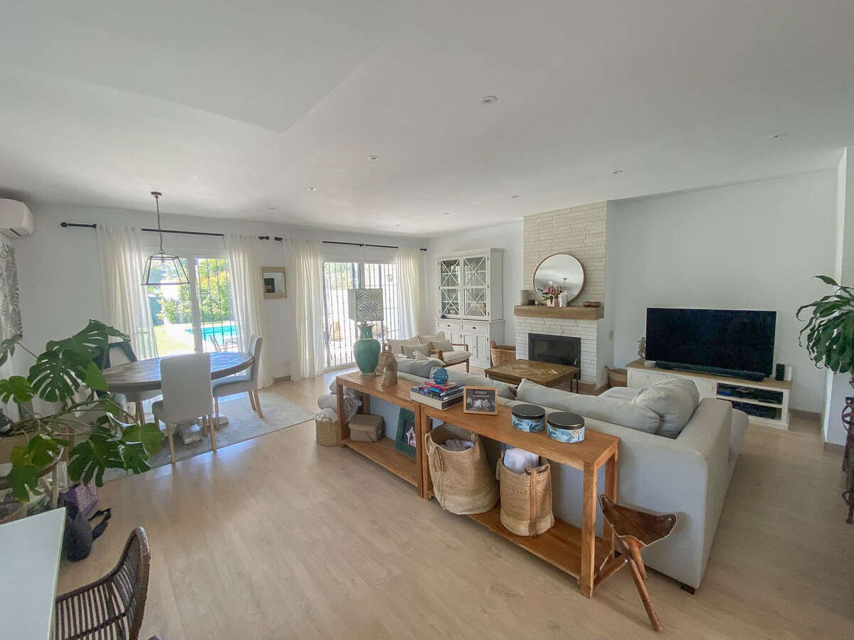 This spectacular semi-detached villa, located in the sought after area of San Pedro Playa in Marbella, has been recently renovated to offer a modern home full of amenities. Just steps from the beach, this property combines an excellent location with luxury features ideal for enjoying life by the sea. It has 3 bedrooms and 3 bathrooms, offering spacious and comfortable rooms perfect for family or guests, plus a large and bright living room that becomes an ideal space for relaxation and gatherings, bathed in natural light thanks to its open design.