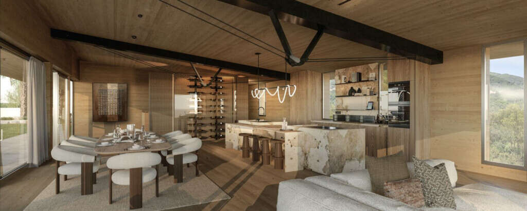 Presenting an exclusive under-construction villa enveloped by captivating sea views in the prestigious La Reserva zone in Sotogrande. This remarkable property showcases eco-conscious luxury, nestled among verdant landscapes with a sleek, modern design. Created to blend environmental sustainability with sophistication, every detail has been carefully crafted to reduce its environmental impact without sacrificing style. At the villa's heart is a spacious, open-plan living area featuring floor-to-ceiling glass walls that offer sweeping views of the coast, with vistas extending to the African coastline, Gibraltar, and La Reserva golf course. Perched in the hills, this architectural masterpiece integrates seamlessly with its natural surroundings. Built with sustainable, durable materials like CLT wood, known for its strength and earthquake resistance, the villa combines eco-friendliness with a cozy, rustic aesthetic. Situated within a gated, 24/7-secured community, the property sits on a peaceful cul-de-sac, a short drive from Sotogrande International School and close to renowned golf clubs like La Reserva and Valderrama. Additionally, Sotogrande port and nearby beaches are only a quick 10-minute drive away. Inside Villa Verde, sunlight pours through energy-efficient, floor-to-ceiling windows and strategically placed skylights, blending the indoors with the natural beauty outside. The open layout fosters a fluid connection between living spaces, emphasizing spaciousness and a harmonious relationship with the surrounding landscape. Villa Verde's eco-friendly approach is evident in its thoughtful design. Passive cooling is enabled by natural ventilation through strategically positioned windows and adjustable louvers, minimizing the need for air conditioning. Insulation made from recycled materials ensures year-round temperature stability, while energy-efficient appliances further reduce energy use. Stepping onto the expansive terrace, a serene oasis awaits. A large infinity pool invites you for a refreshing swim while enjoying the endless ocean view.