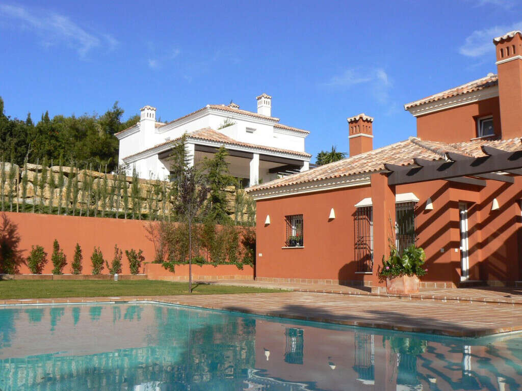 This luxurious and spacious villa spans 490m2, plus terraces and porches, situated on a 1,293m2 plot offering stunning views, near Almenara Golf. Built to the highest standards across three levels, the bright villa features 4 bedrooms (including a master suite with walk-in dressing room), 4 en-suite bathrooms, and a guest toilet. The large 47m2 living room, complete with an open fireplace, opens onto beautiful south-west facing porches. Additional spaces include a separate dining room, a fully equipped kitchen with high-end appliances and a breakfast area, as well as a laundry room. The property benefits from air conditioning (hot/cold), underfloor heating throughout, marble flooring, double-glazed windows, satellite TV, and telephone. It also includes an underground garage for two cars. The beautifully landscaped gardens are equipped with automatic irrigation, lighting, and a swimming pool. This delightful villa is just a five-minute drive from Sotogrande's main golf courses and marina, with all its amenities and services.