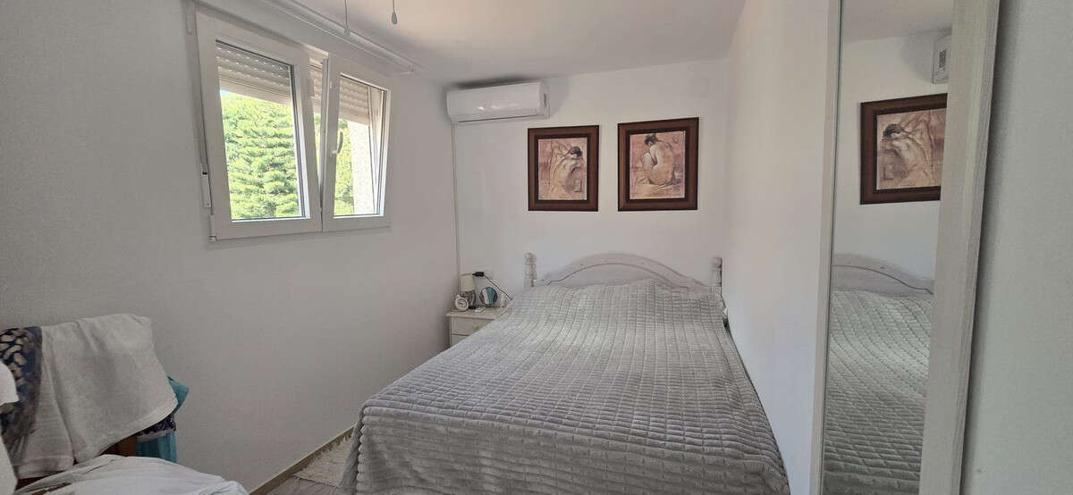 This is a two-story semi-detached house with a very comfortable layout. On the fully renovated ground floor, you will find a spacious living-dining room with open plan kitchen, one bedroom, a bathroom with shower and a covered porch with access to a private terrace, perfect for enjoying the Mediterranean climate. Upstairs, there are three bedrooms (one double and two singles) and a second bathroom.