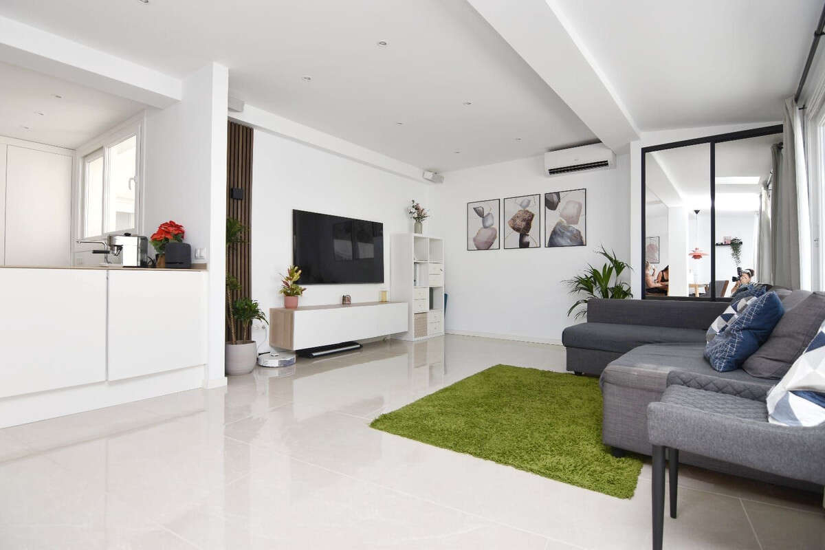 Inside, you will find three spacious bedrooms, two modern bathrooms, a bright living room with large windows, and an elegant open-plan Nordic-style kitchen that brings both warmth and space. The entire property has been renovated and modernised with high-quality materials, including porcelain stoneware flooring.